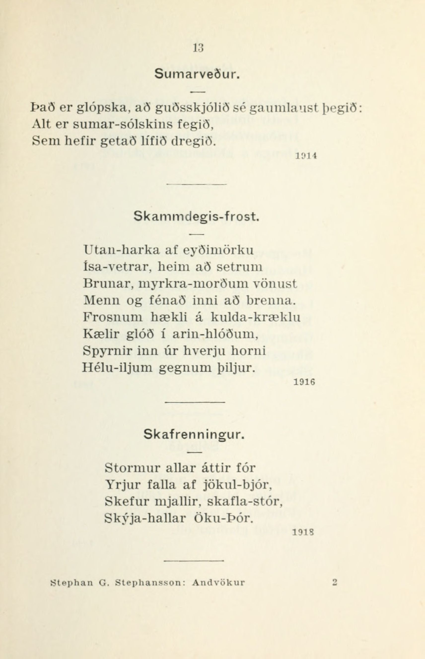 Stephan G. Stephansson: Andvökur