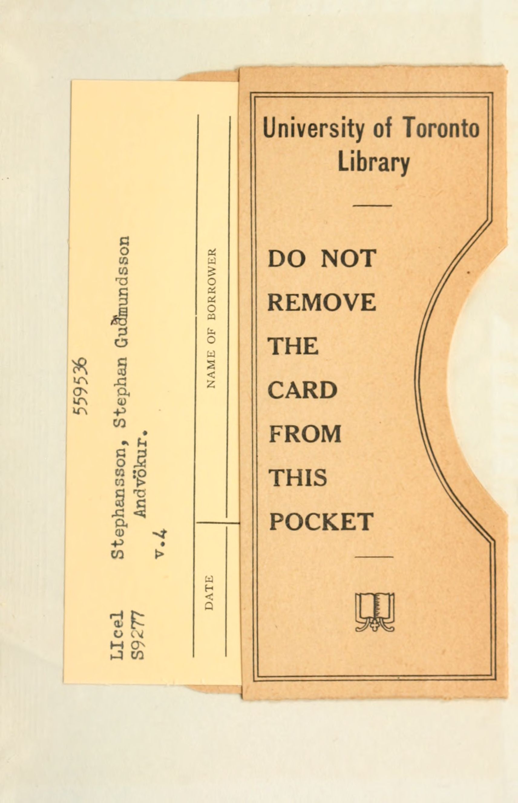 - Project Runeberg -  Andvökur. Eftir Stephan G. Stephansson / IV. 1908-1923 /