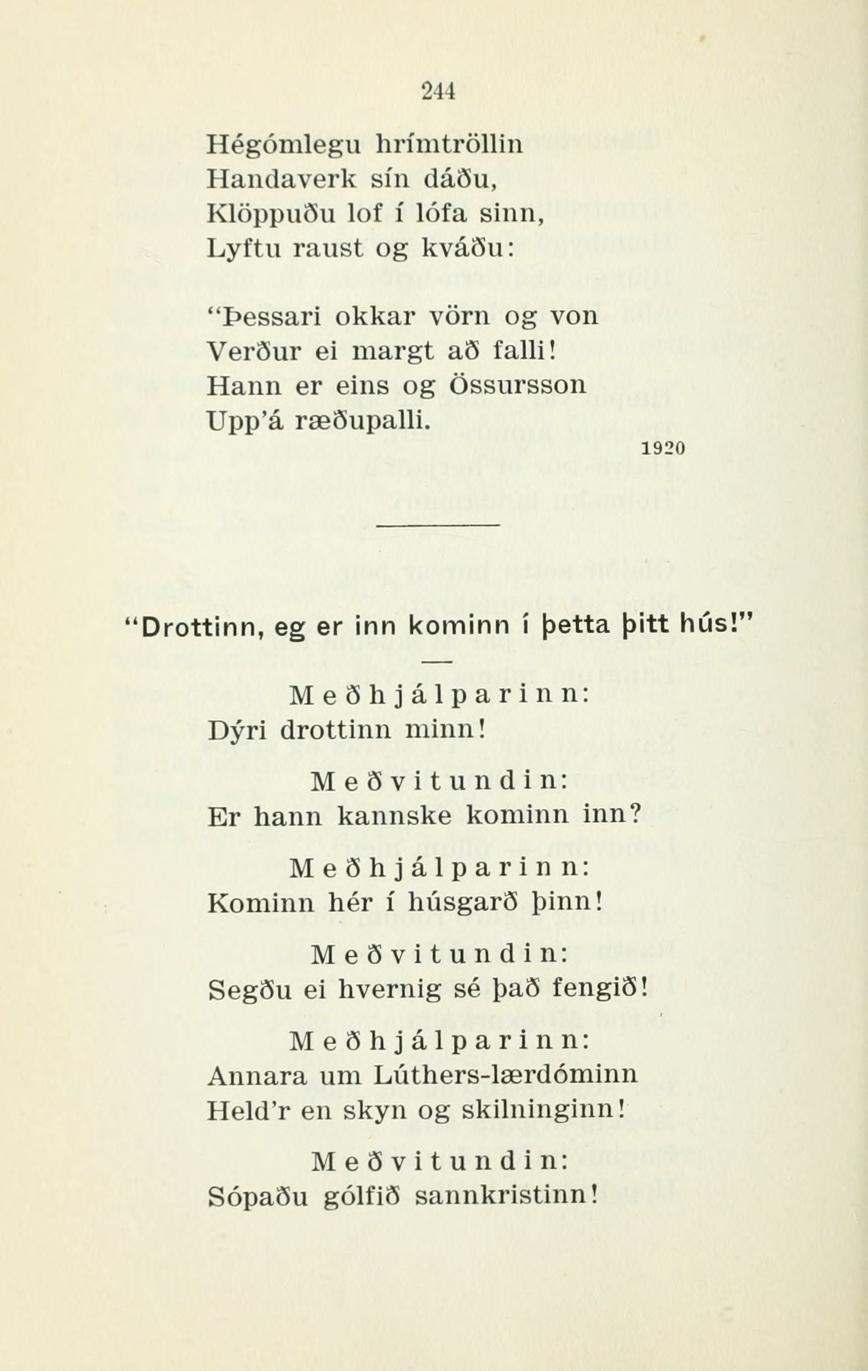 “Drottinn, eg er inn kominn í þetta þitt hús!”