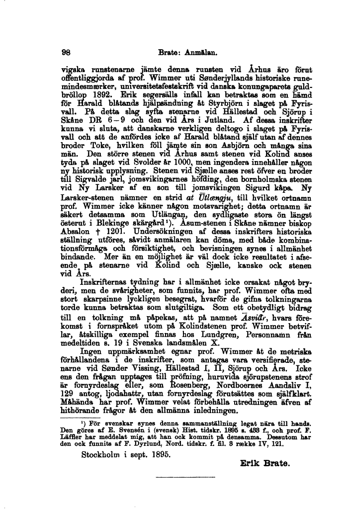 Den göres af E. Svensén i (svensk) Hist. tidskr. 1895 s. 488 f., och prof. F.