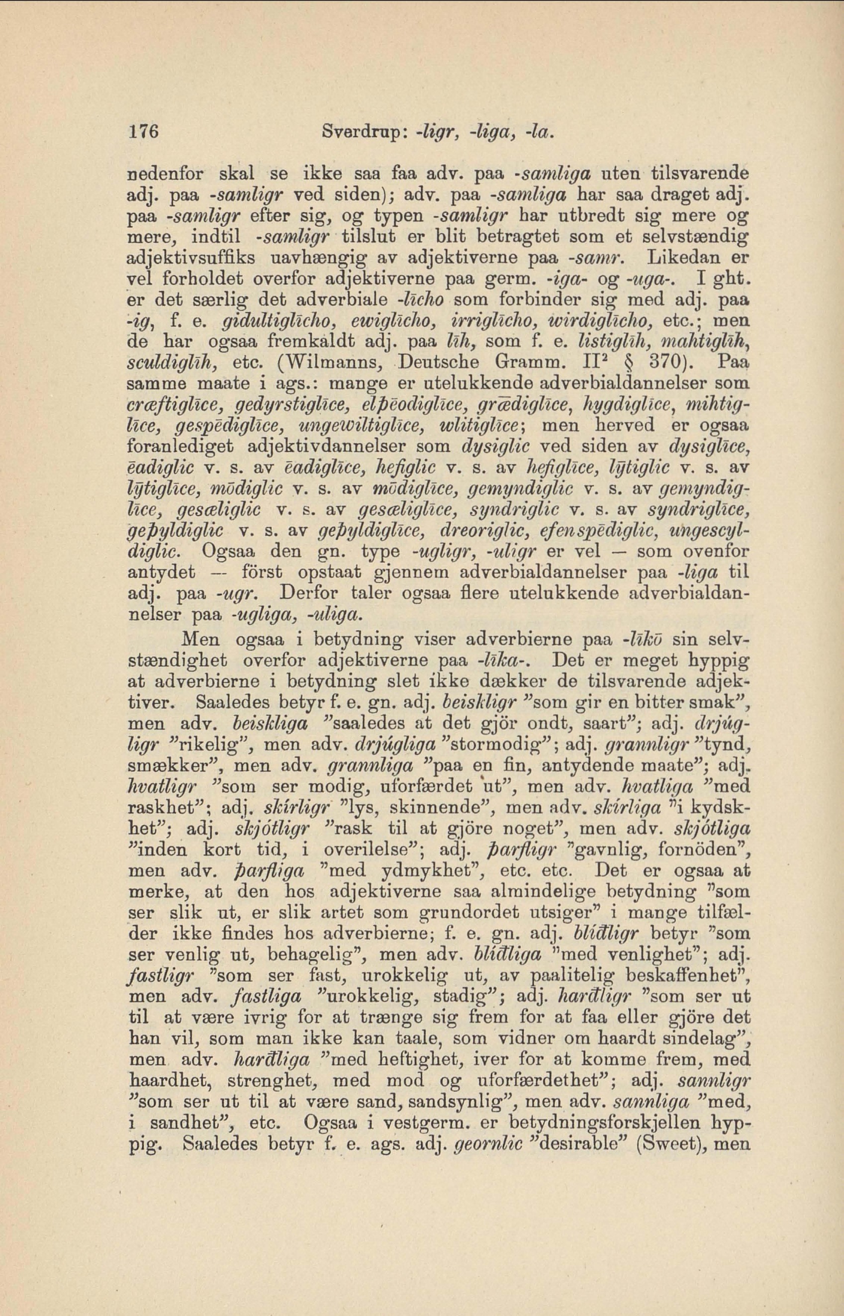 der ikke findes hos adverbierne; f. e. gn. adj. blidligr betyr ”som