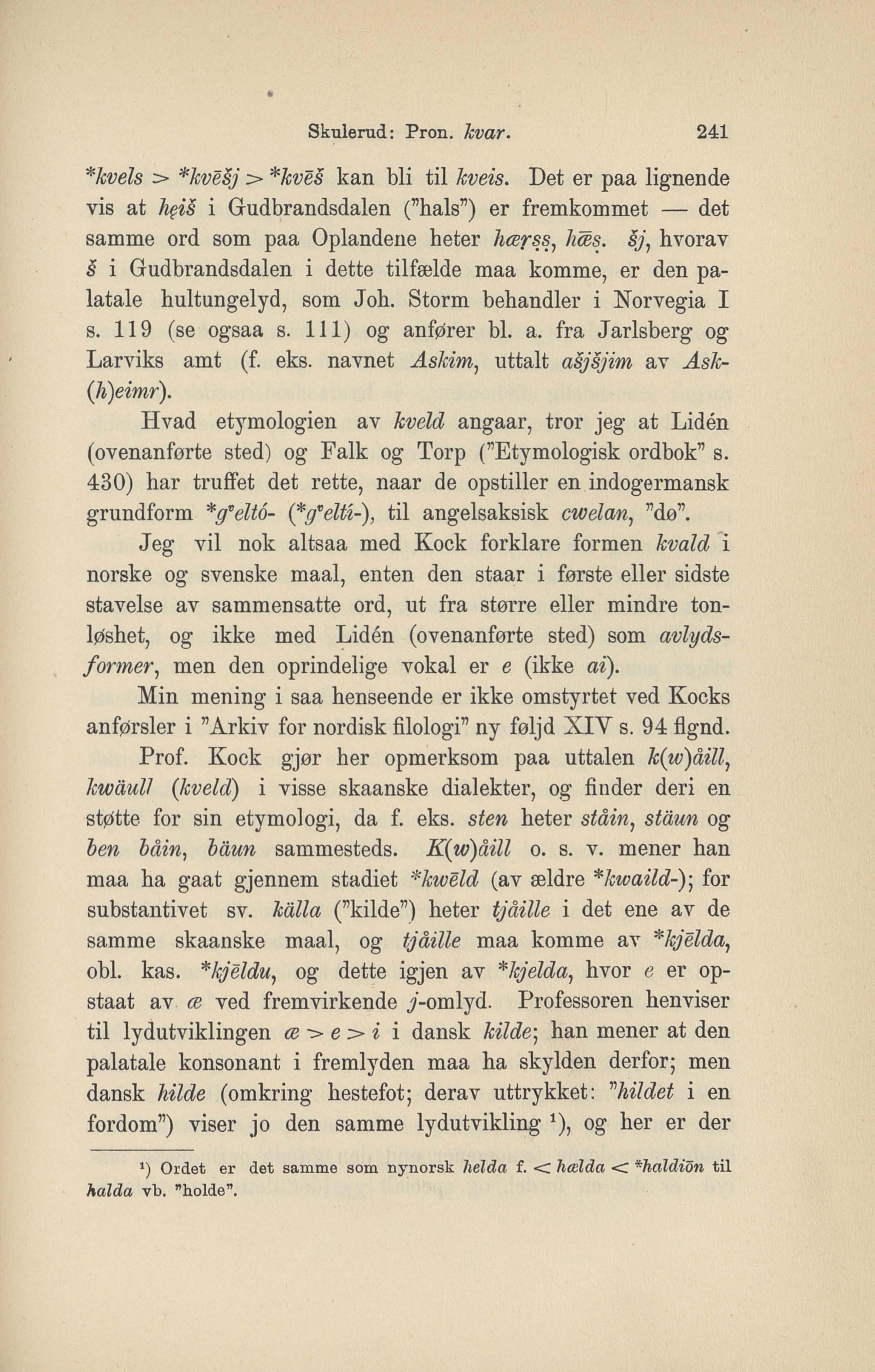 Prof. Kock gjør her opmerksom paa uttalen k(w)åill1