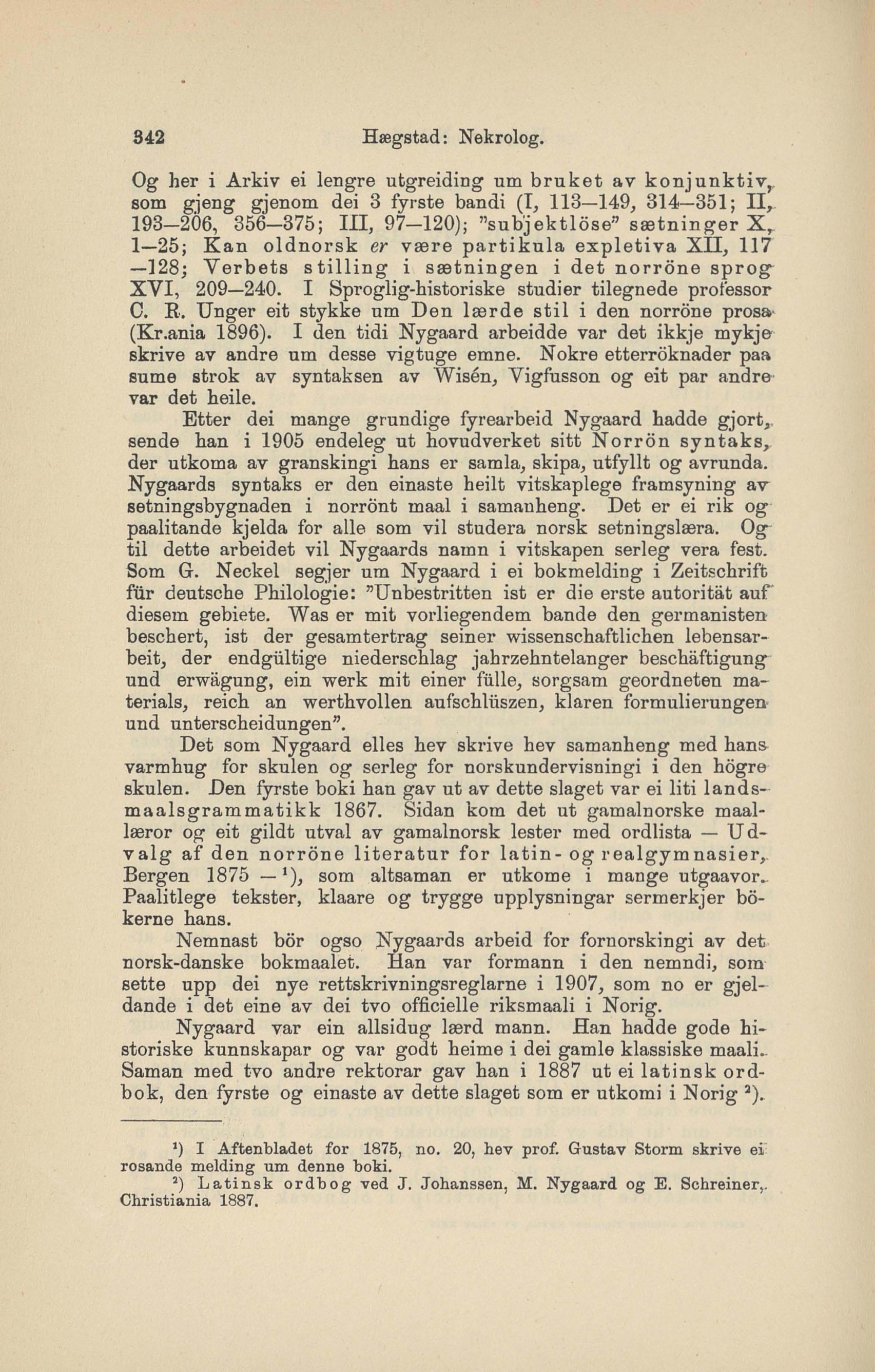 (Kr.ania 1896). I den tidi Nygaard arbeidde var det ikkje mykje