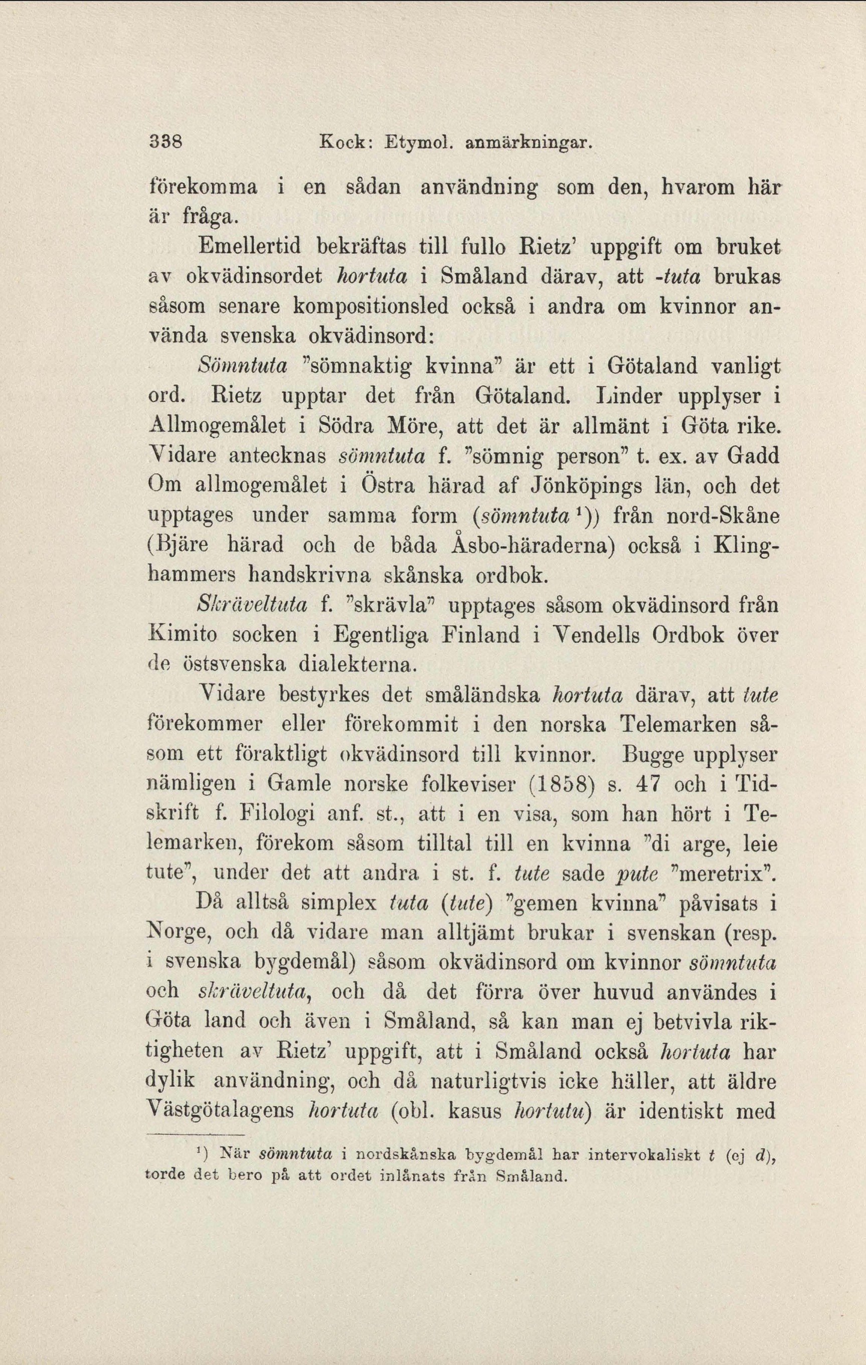 av okvädinsordet hortuta i Småland därav, att -tuta brukas