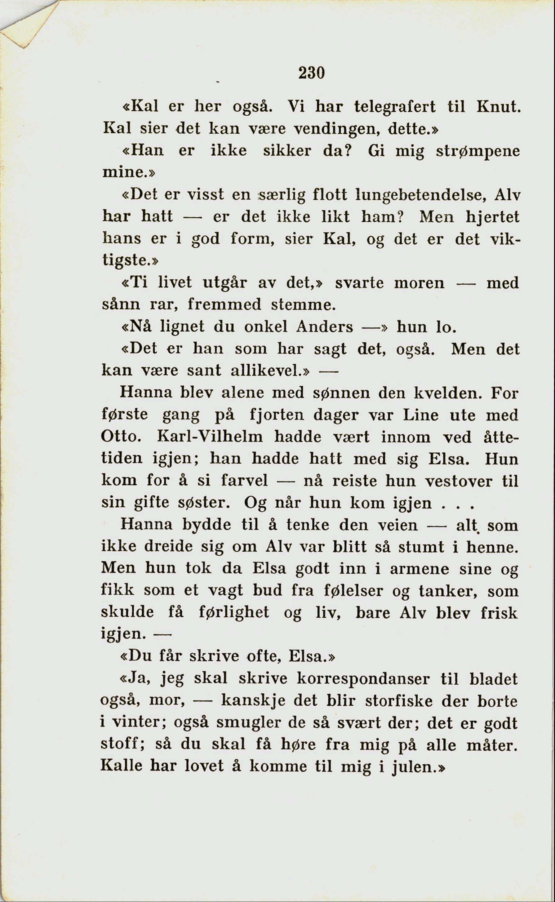åttetiden igjen; han hadde hatt med sig Elsa. Hun