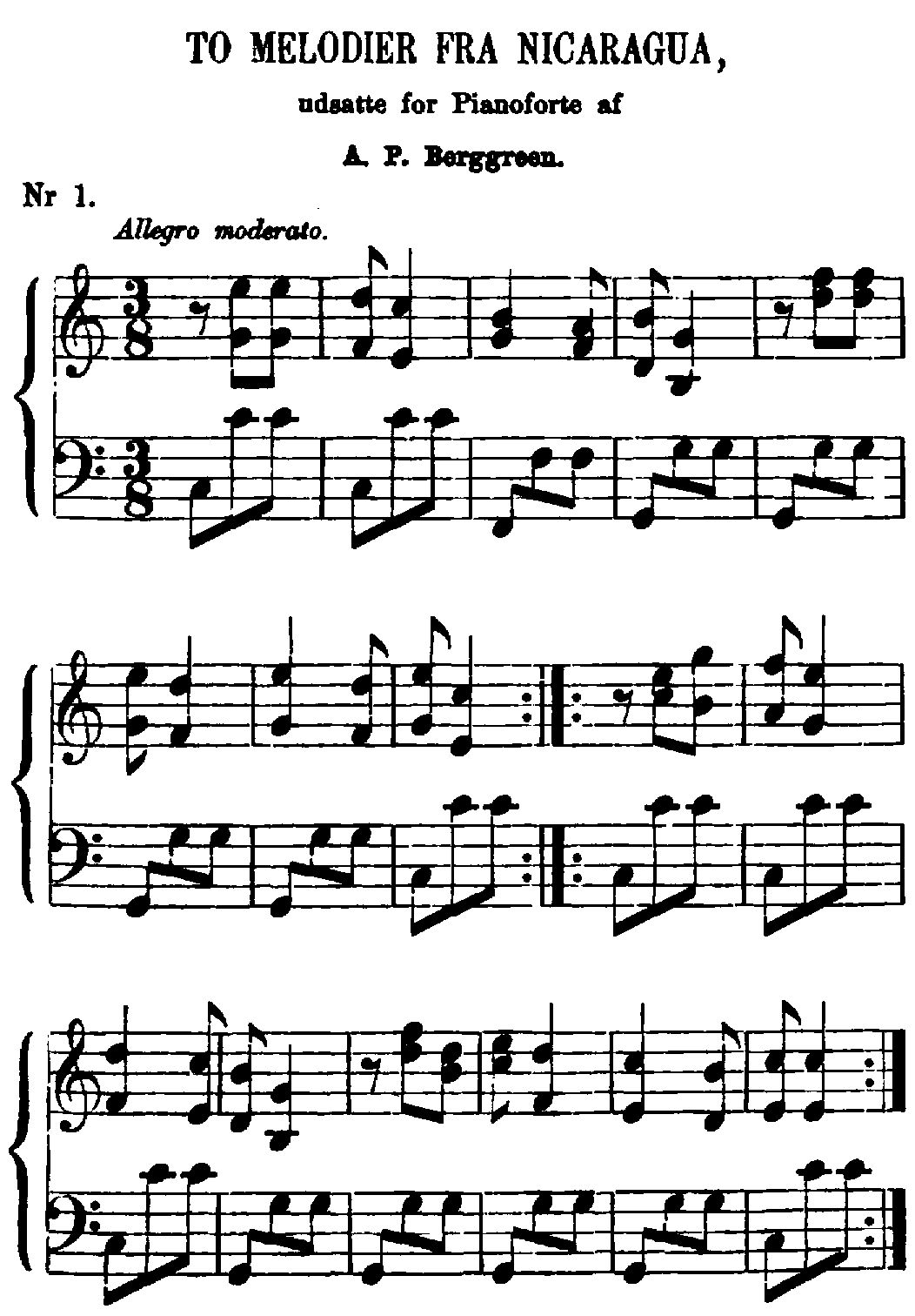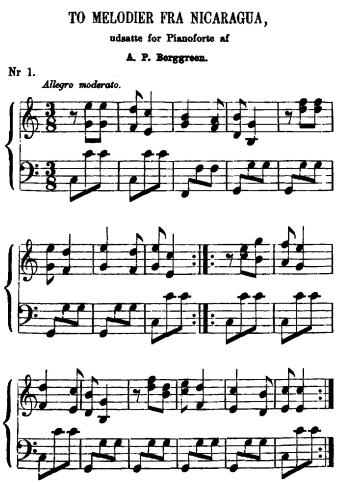 TO MELODIER FRA NICARAGUA, udsatte for Pianoforte af A. P. Borggreen. | ||