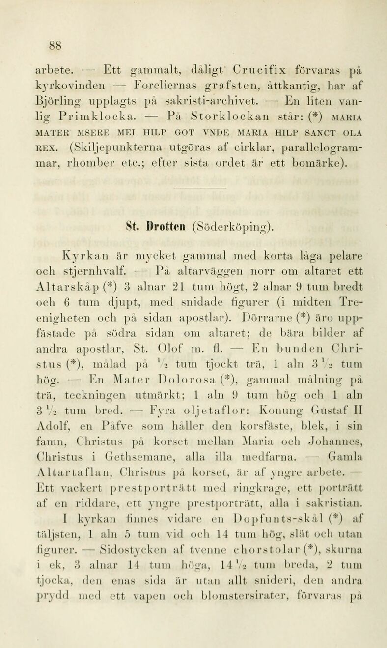 hög. — En Mäter Dolorosa (*), gammal målning på