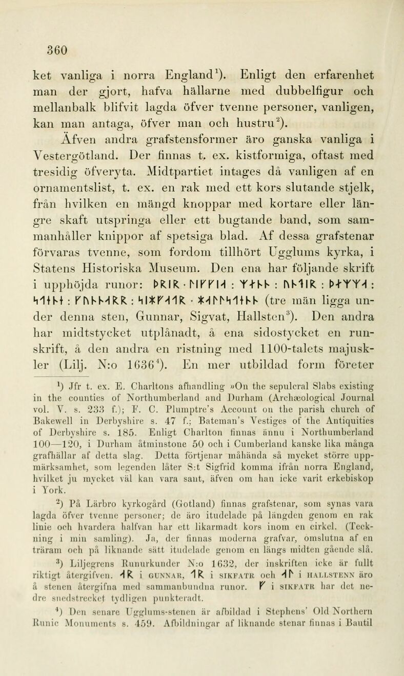 1) Jfr t. ex. E. Charltons afhandling »On the sepulcral Slabs existing