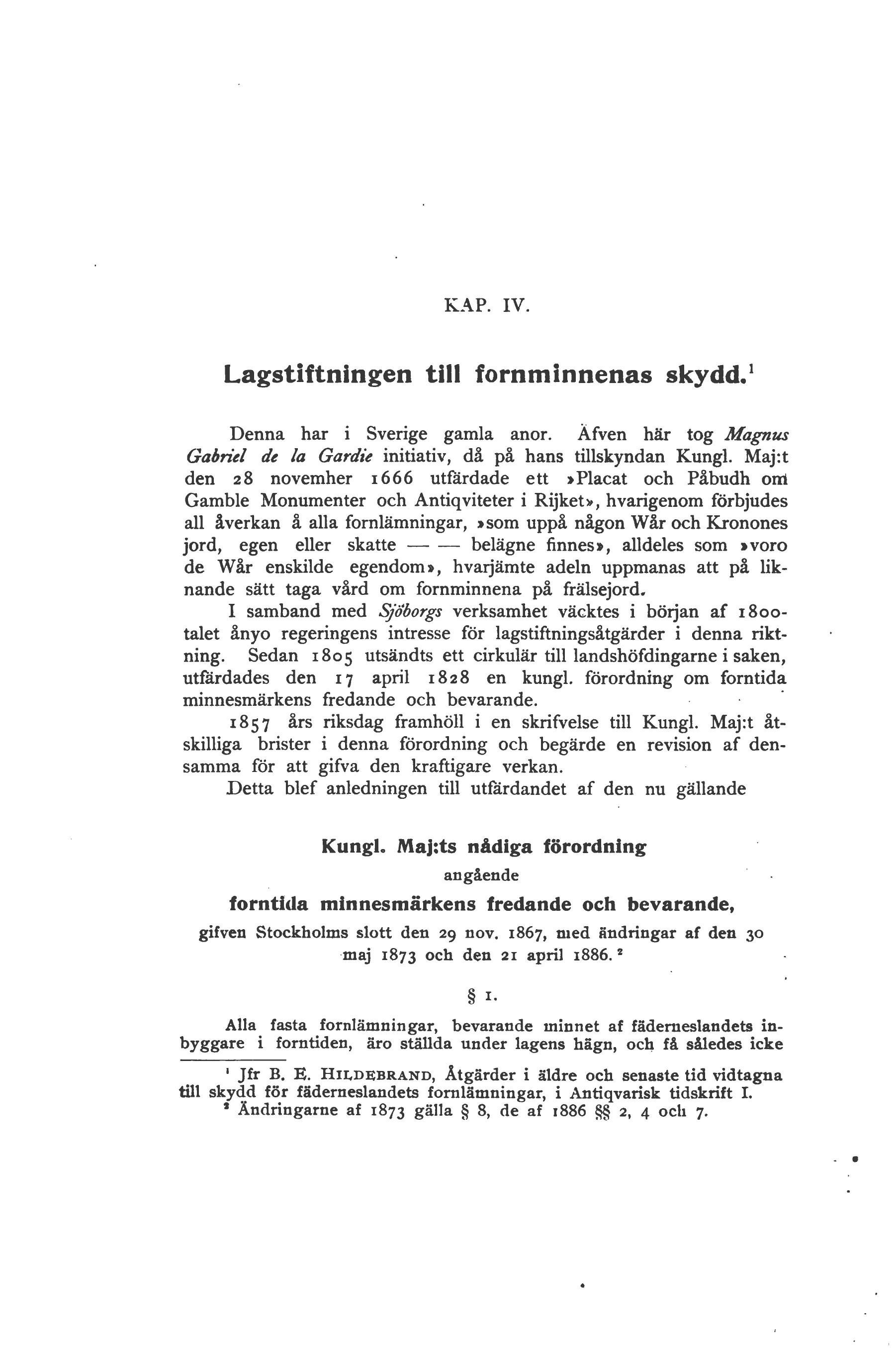 Lagstiftningen till fornminnenas skydd.1