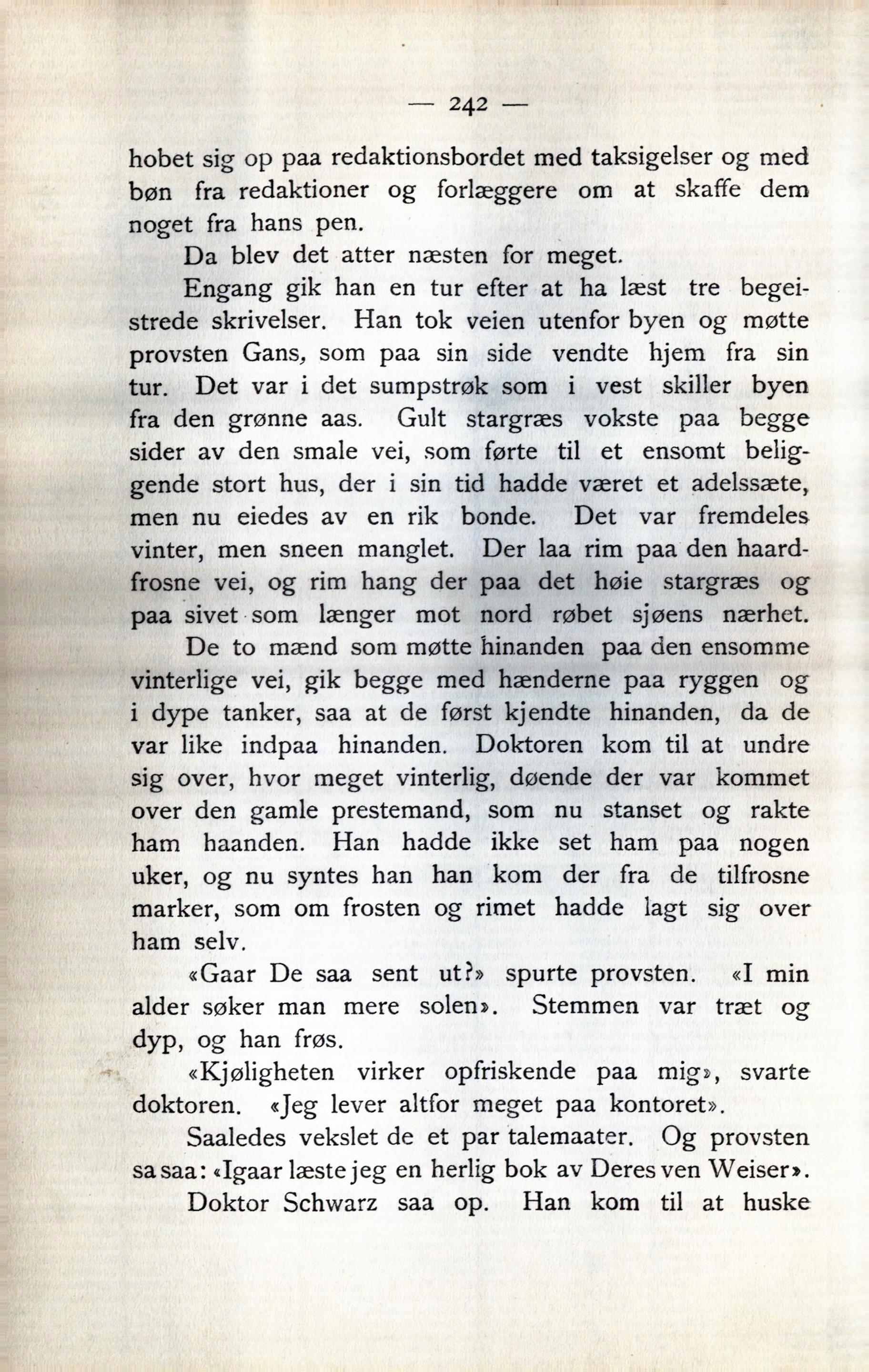 sa saa: «Igaar læste jeg en herlig bok av Deres ven Weiser».