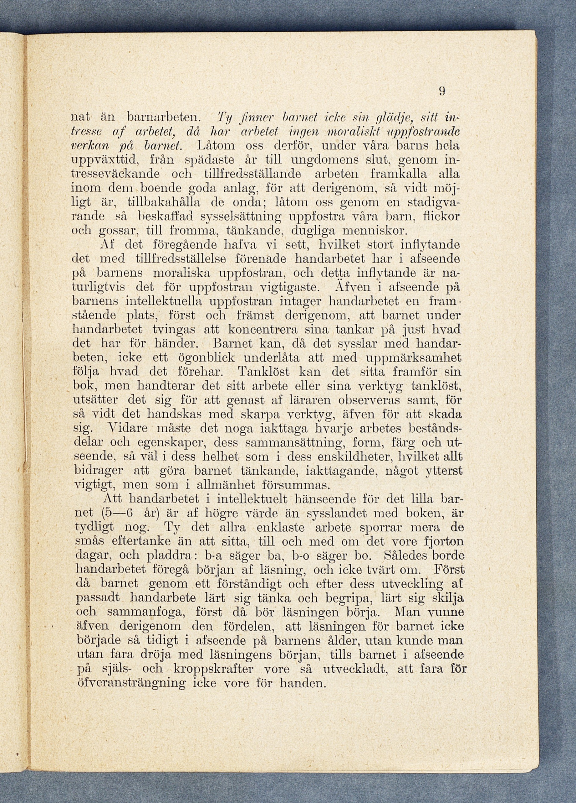 barnens intellektuella uppfostran intager handarbetet en fram-