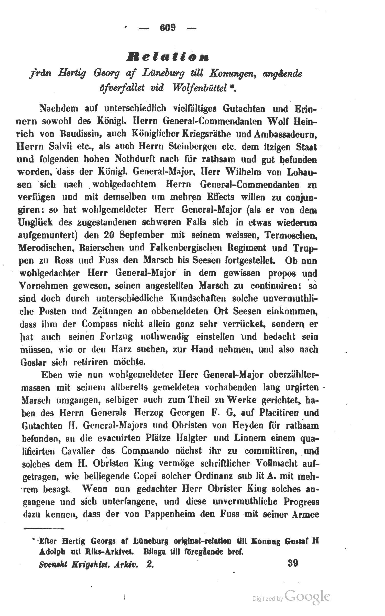 ’ Eller Hertig Georgs af Lüneburg original-relation tili Konung Gustaf H