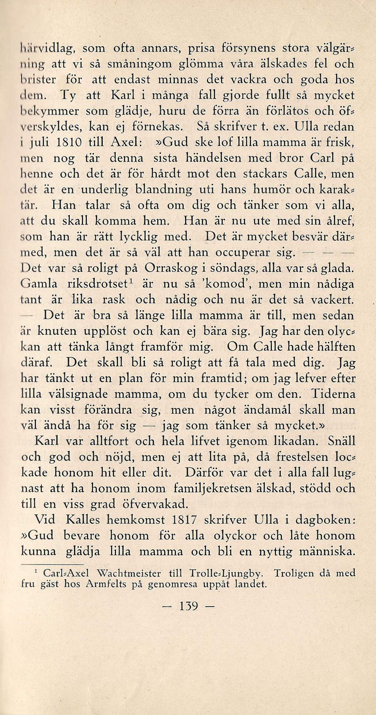 Vid Kalles hemkomst 1817 skrifver Ulla i dagboken: