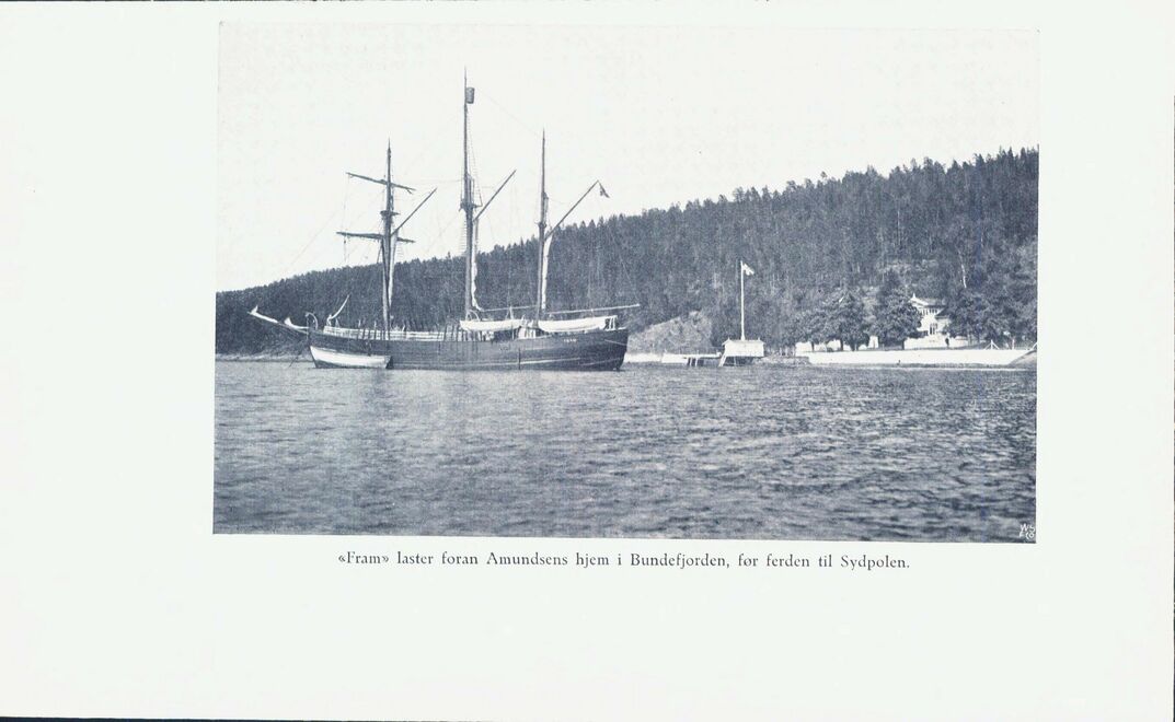 | «Fram» laster foran Amundsens hjem i Bundefjorden, før ferden til Sydpolen. |