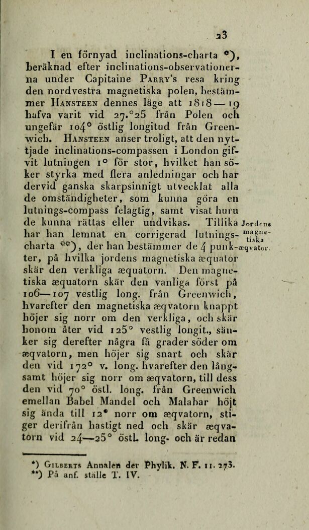 bestäm-mer Hansteen dennes läge att i8r8—19