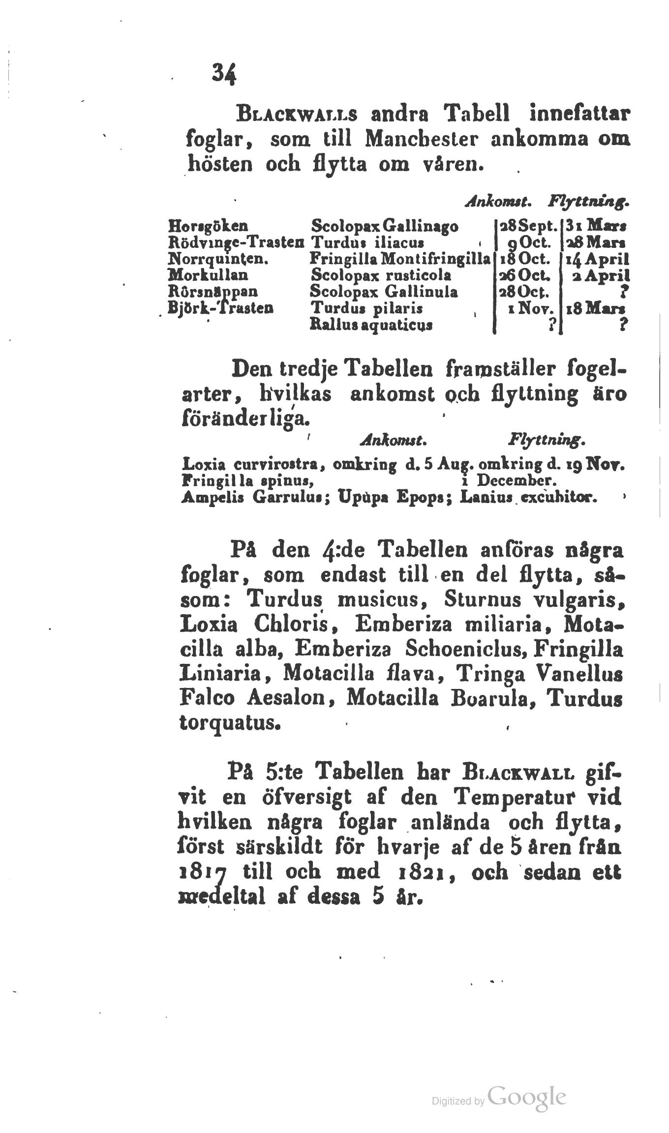 . Björk-Trasten = Turdus pilaris , | Nov. [18 Mars