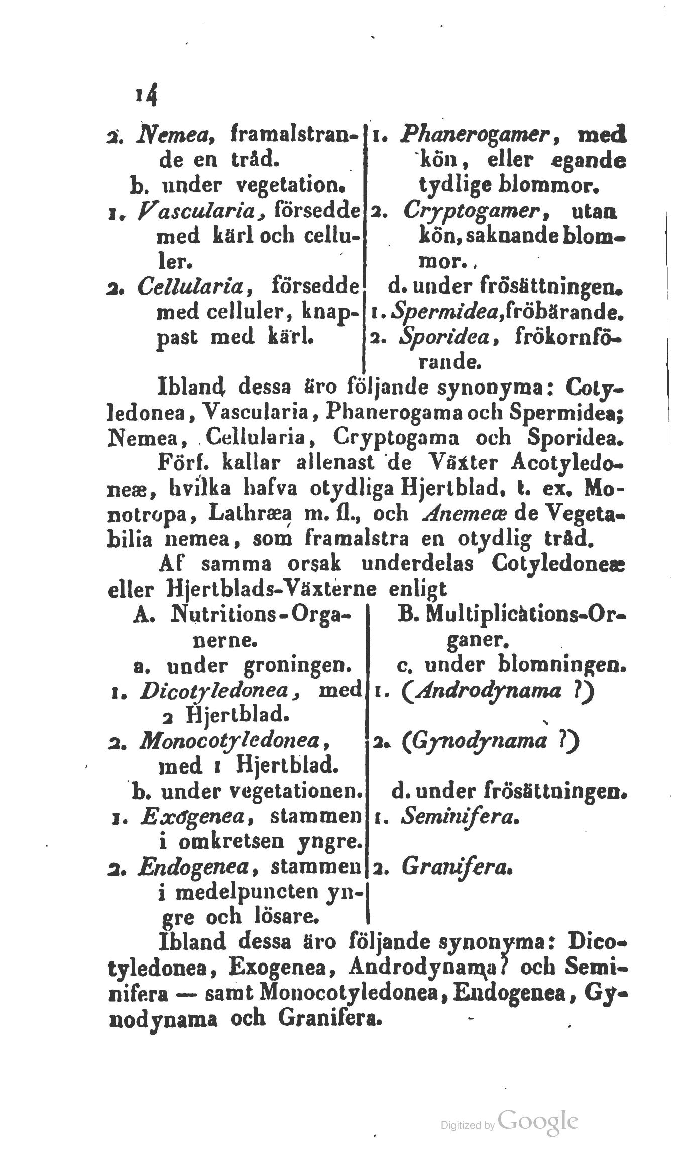 1, Vascularia , förseddela2. Cryptogamer, utan