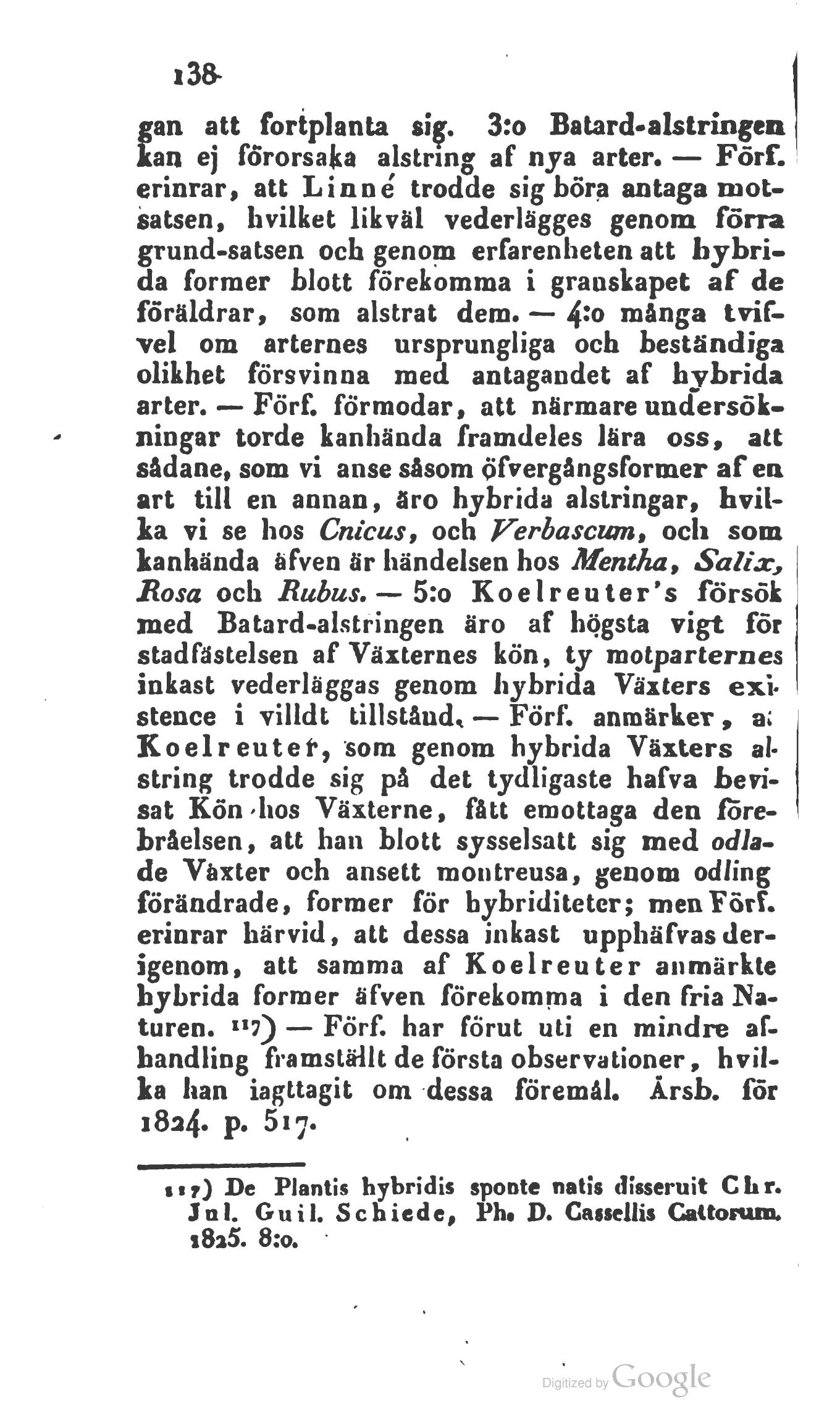 s:7) De Plantis hybridis sponte natis disseruit Chr.