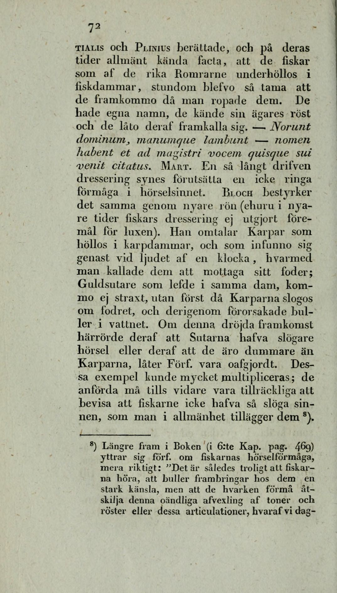 yttrar sig förf. om fiskarnas hörsel förmåga,
