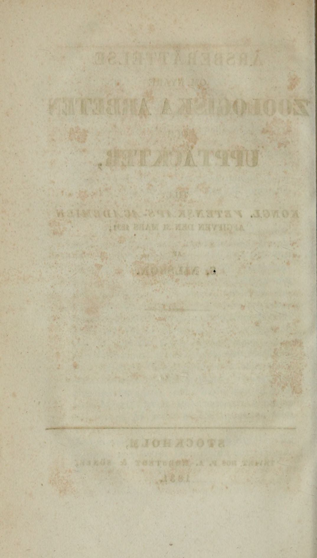 - Project Runeberg -  Årsberättelse om nyare zoologiska arbeten och upptäckter/om zoologiens framsteg / till Kongl. Vetenskaps-Academien afgifven den 31 mars 1831 /