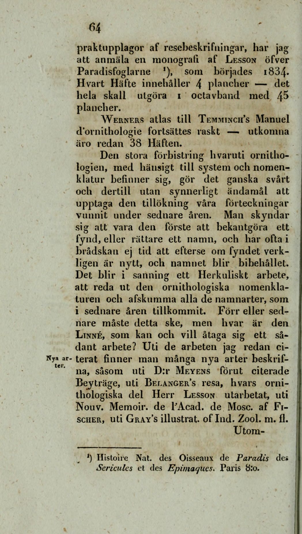 att anmäla en monografi af Lesson öfver