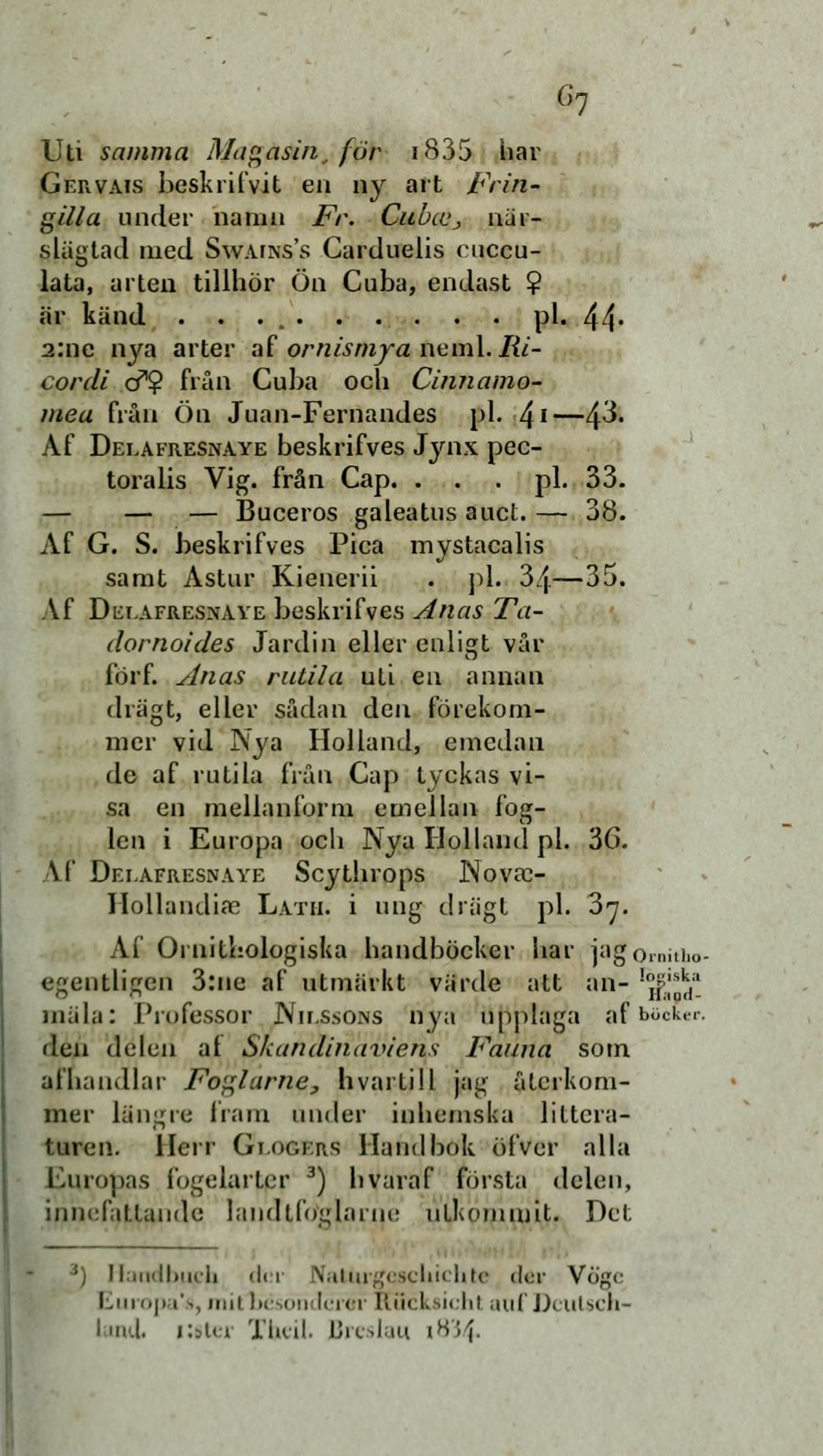 afhandlar Foglarne, hvartill jag