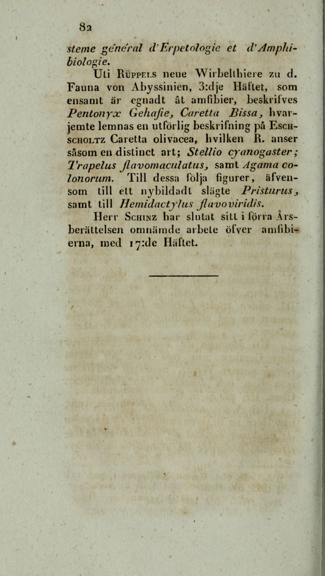 Uti Rüppei.s neue Wirbellliiere zu d.