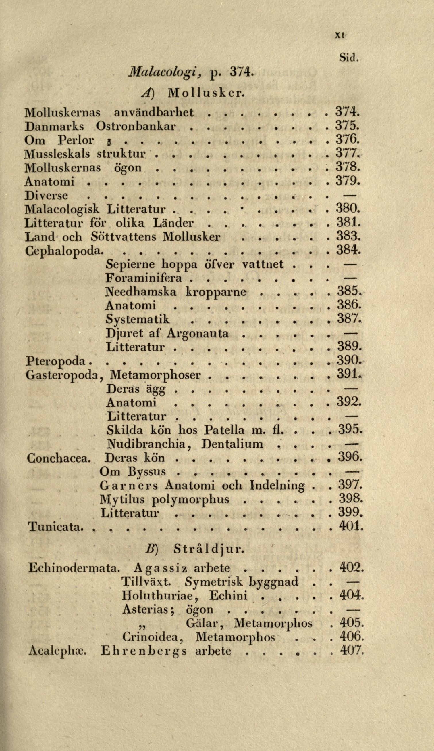 Acalcphæ. Ehrenbergs arbete...... 407.