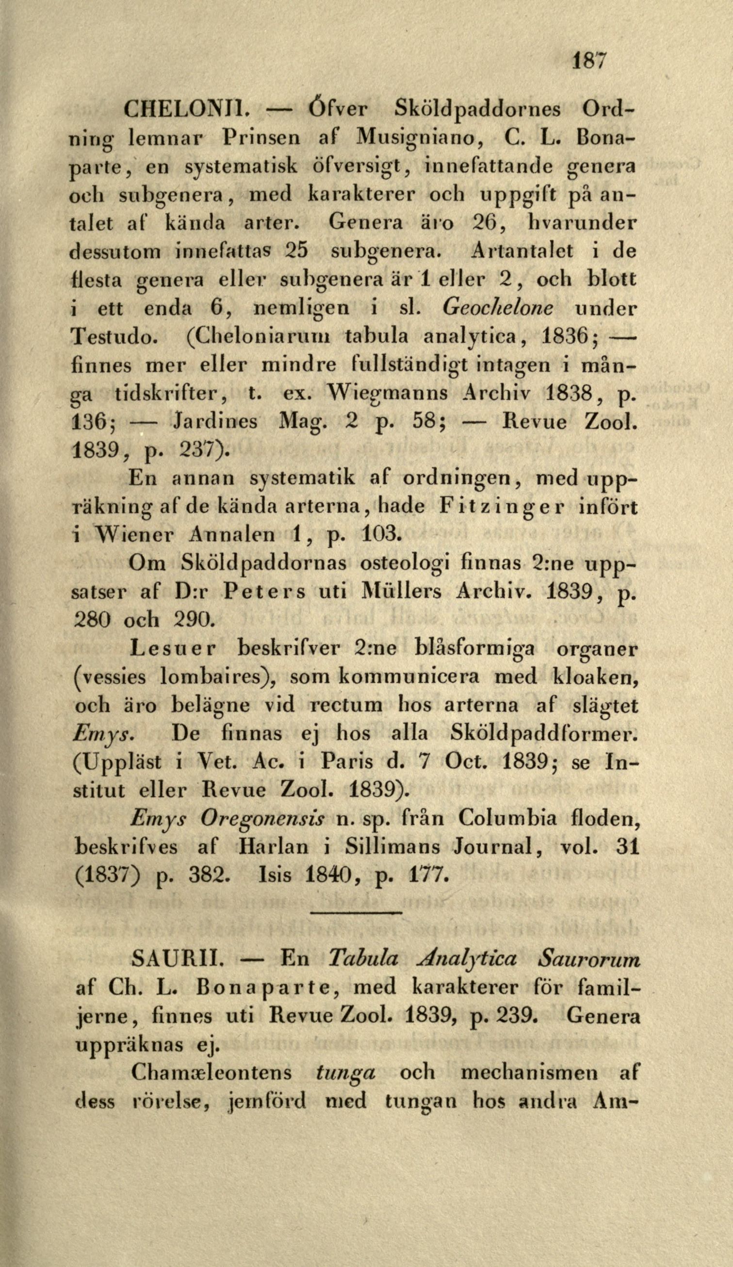 många tidskrifter, t. ex. Wiegmanns Archiv 1838, p.