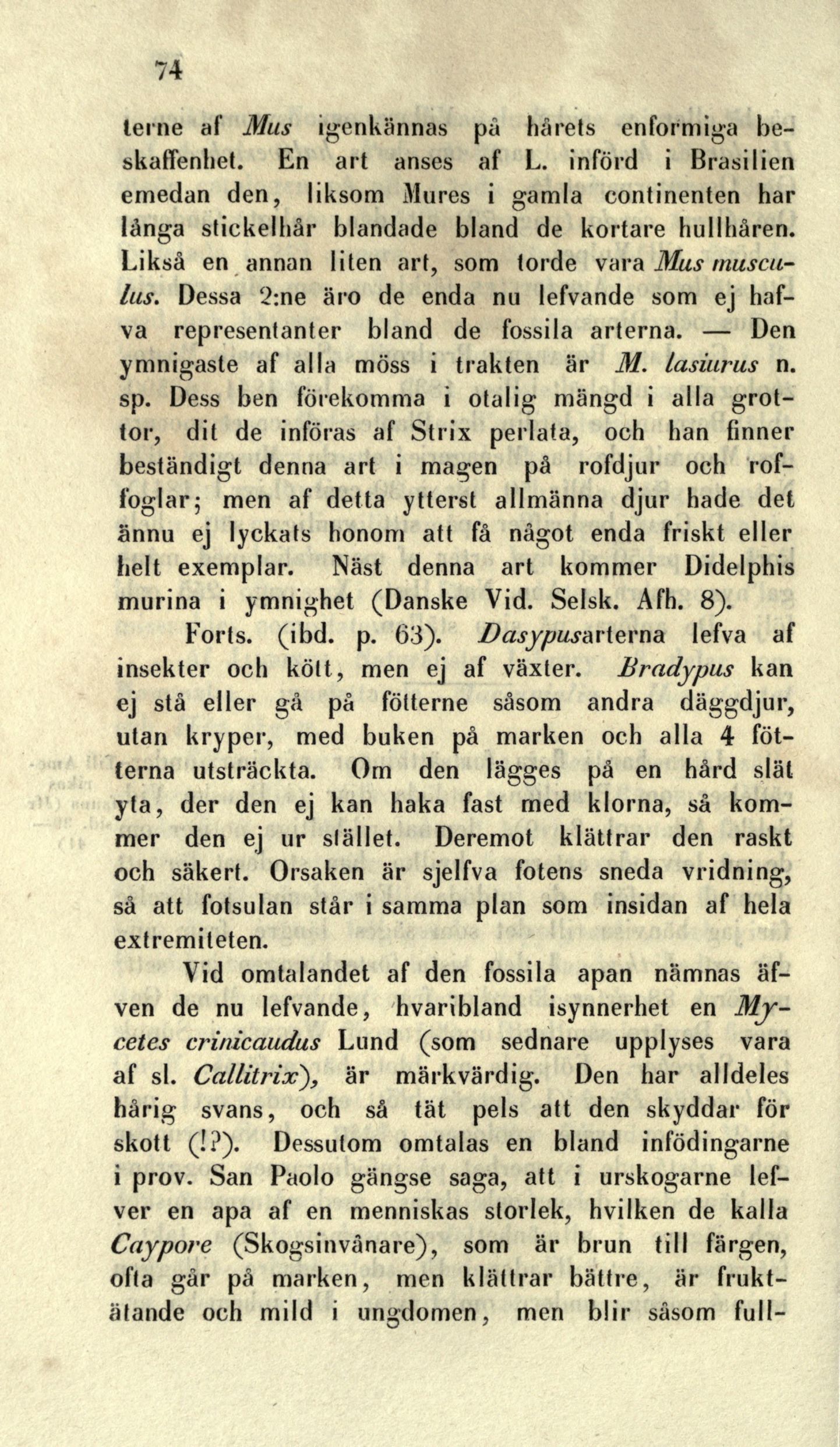 Mj-cetes crinicaudus Lund (som sednare upplyses vara