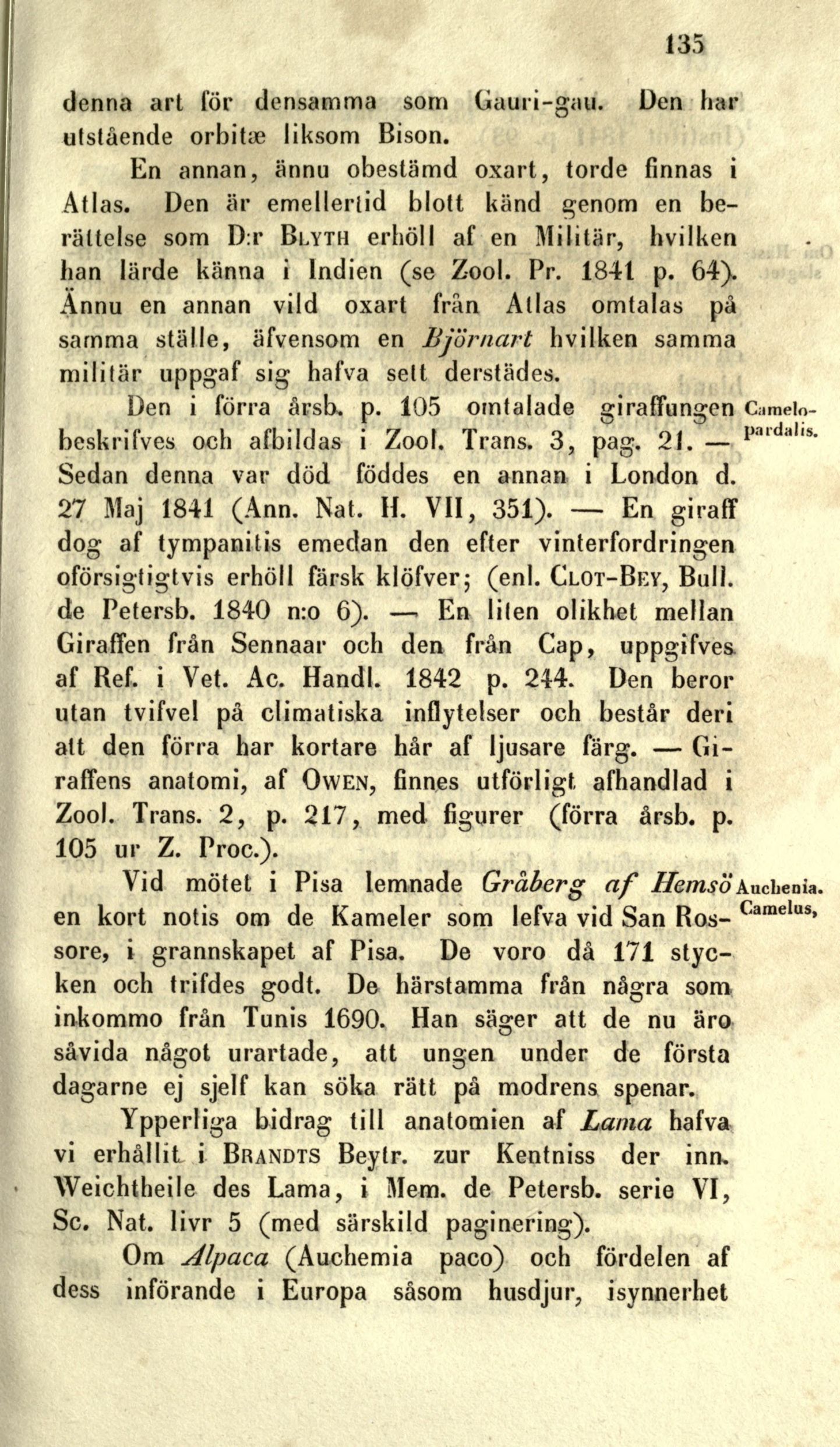 27 Maj 1841 (Ann. Nat. H. VII, 351). — En giraff