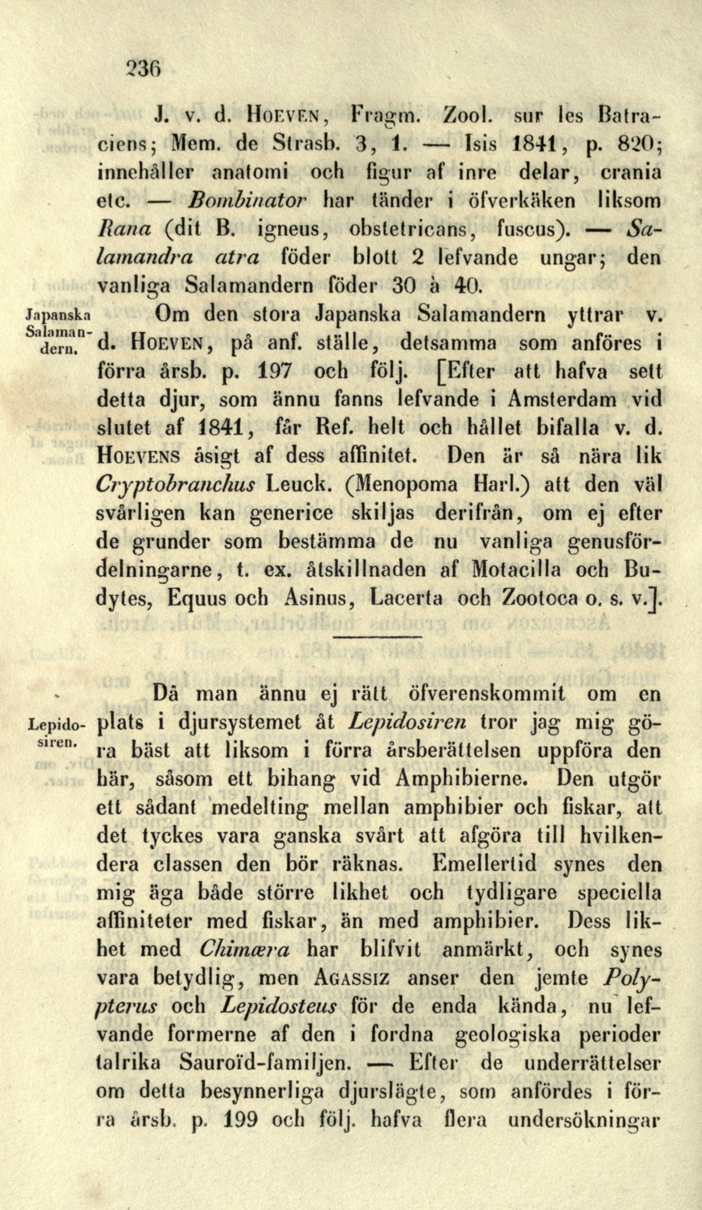J. v. d. Hoeven, Fragm. Zool. sur les