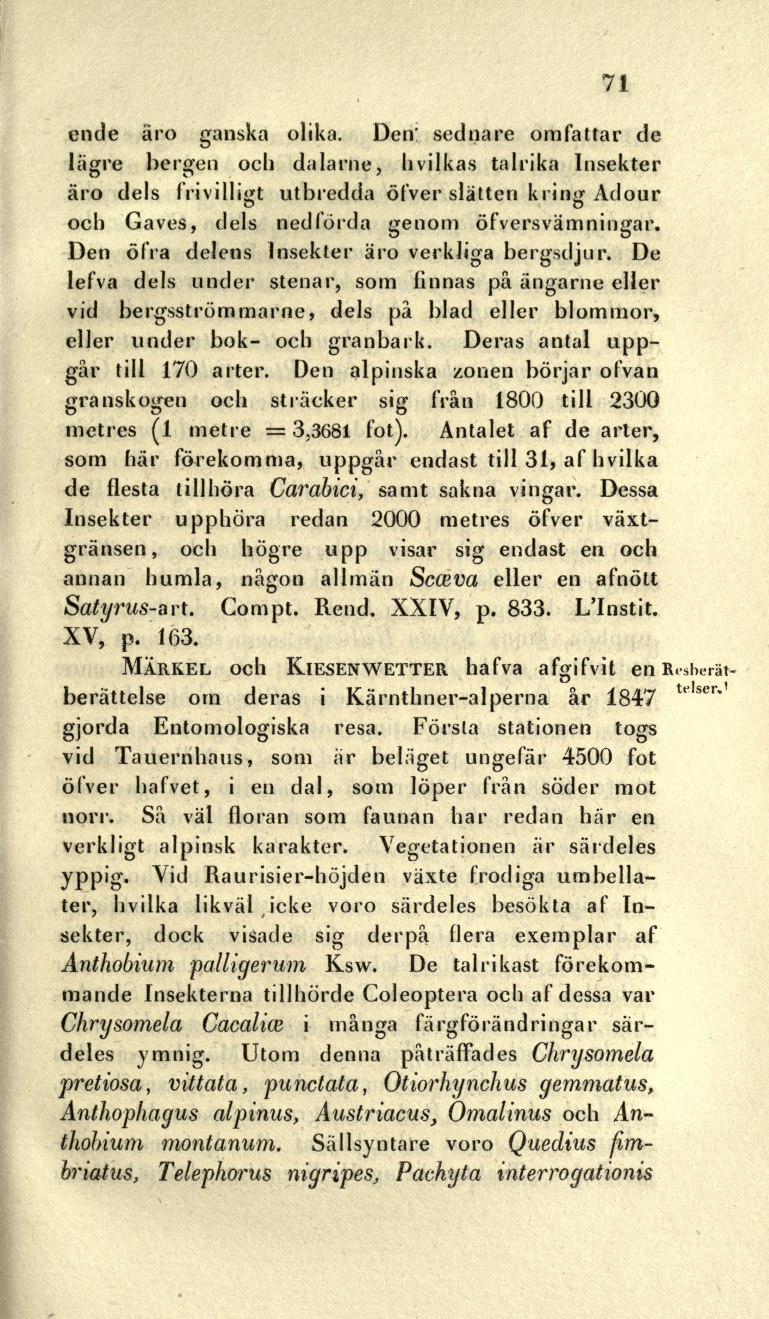 lägre bergen och dalarne, hvilkas talrika Insekter