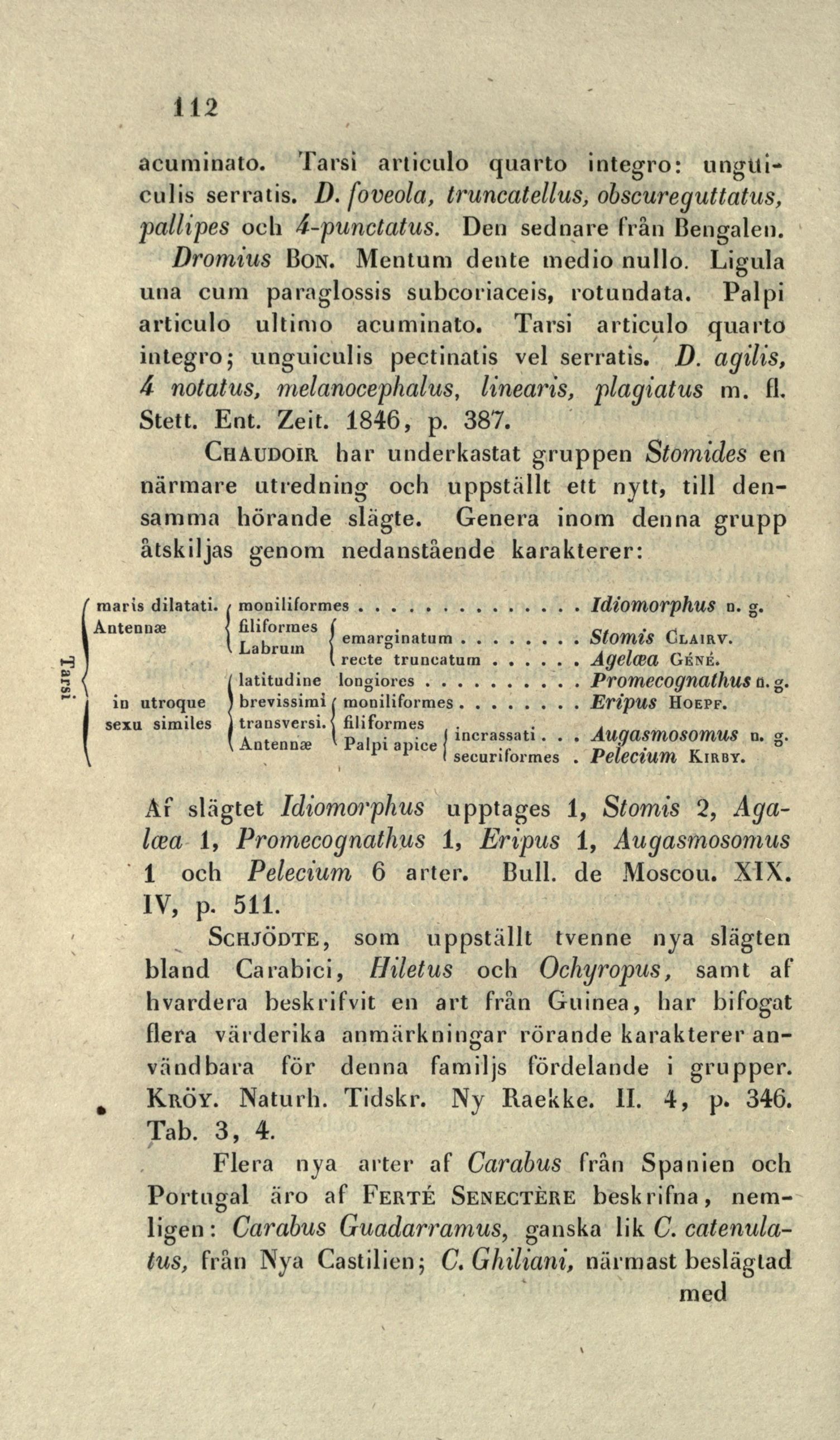 Af slägtet Idiomorphus upptages 1, Stomis 2,