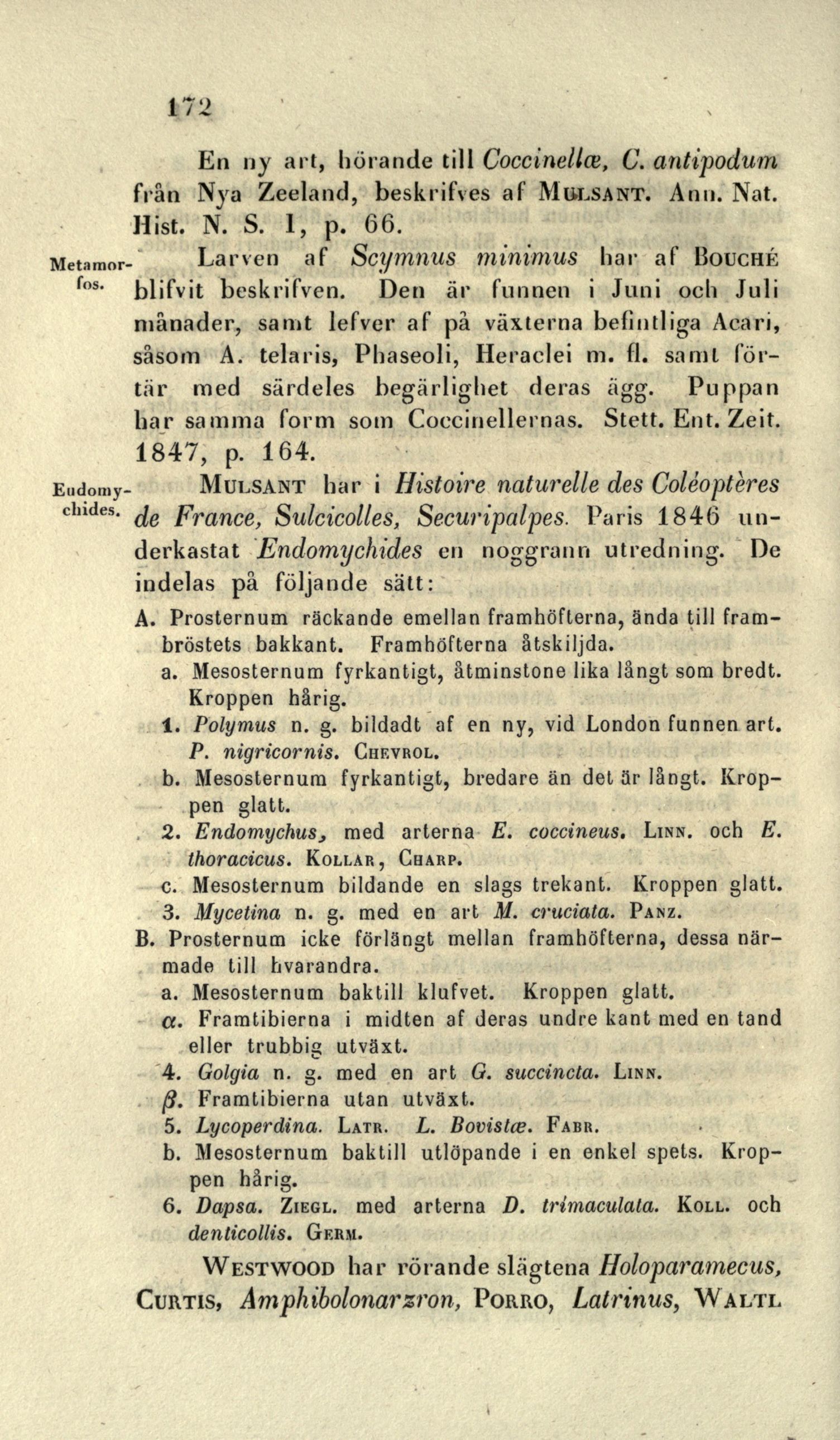 Mulsant har i Histoire naturelle des Coléoptères