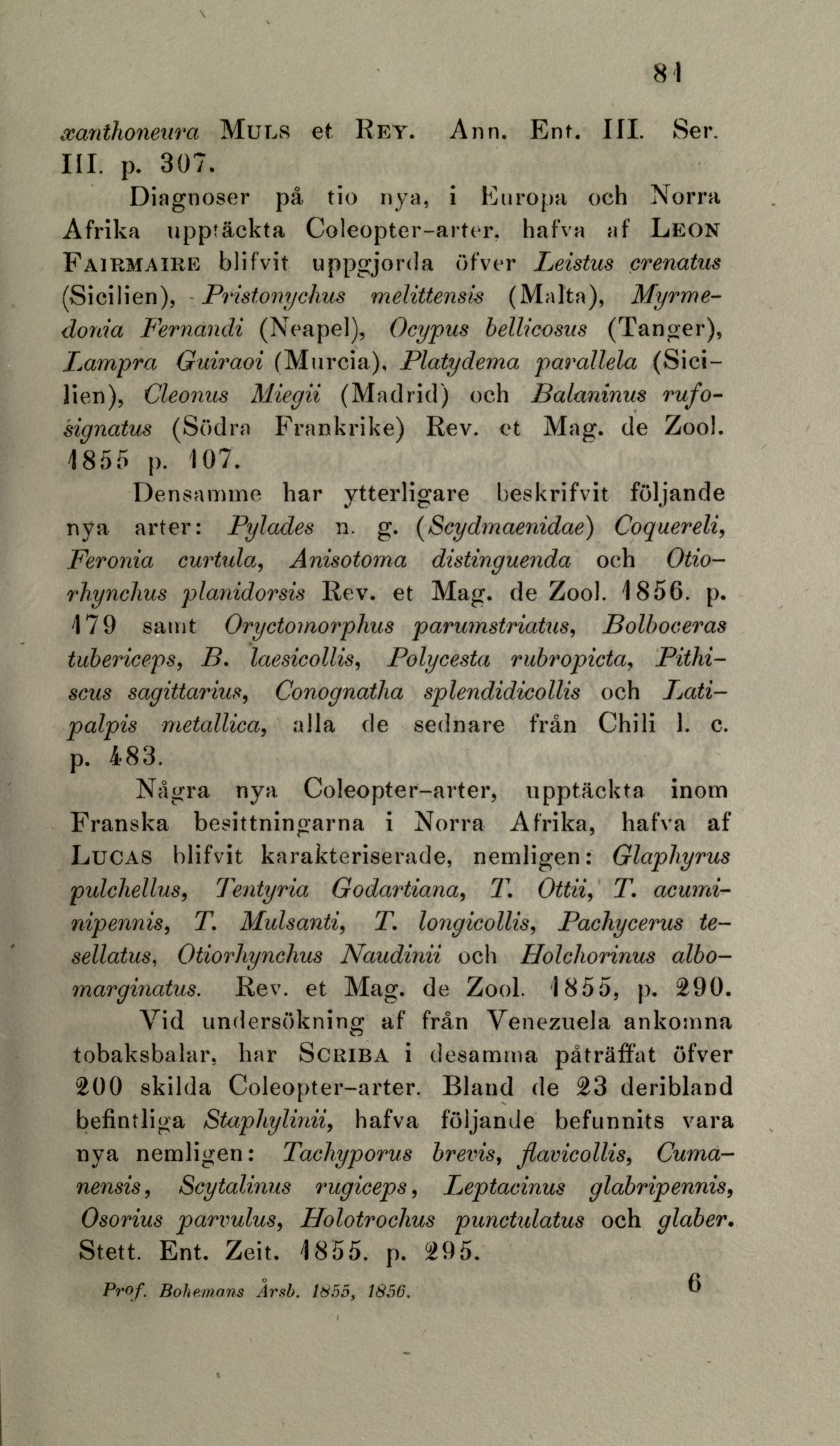 Prof. Bohemans Årsb. 1855, 1856. ^