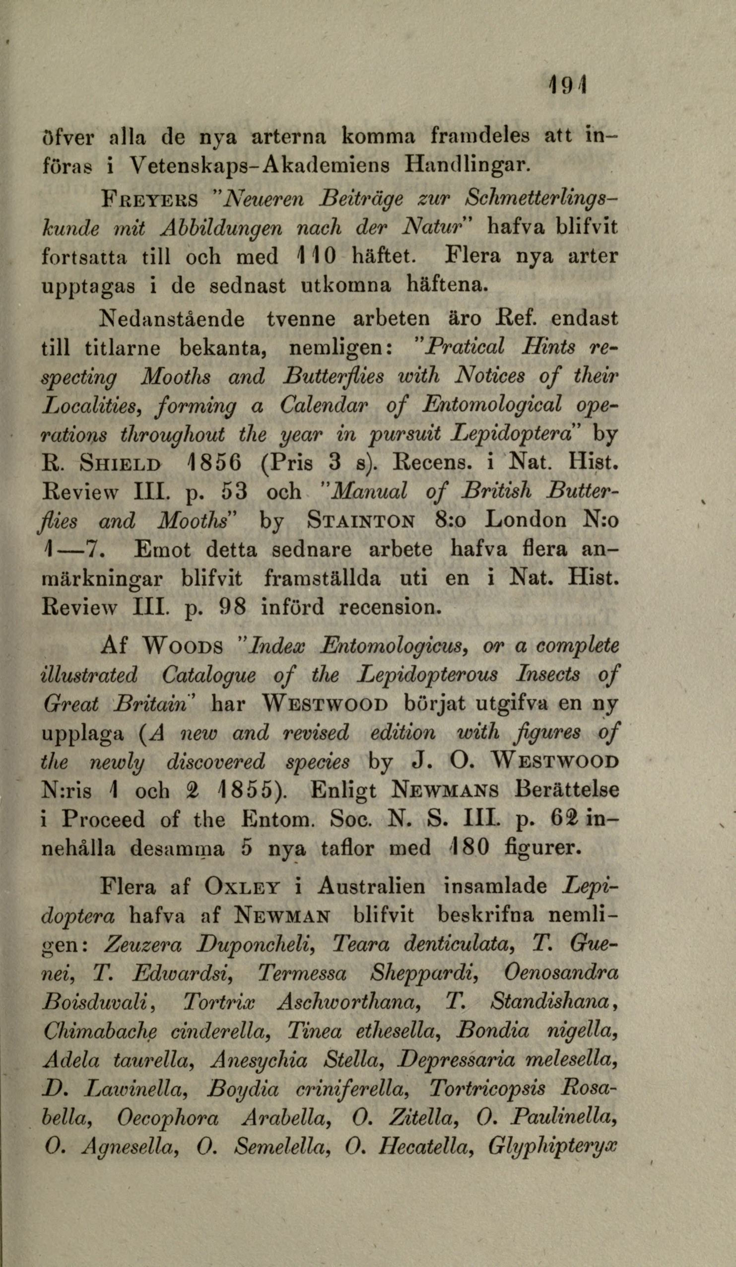 R. Shield 1856 (Pris 3 e). Recens. i Nat. Hist.