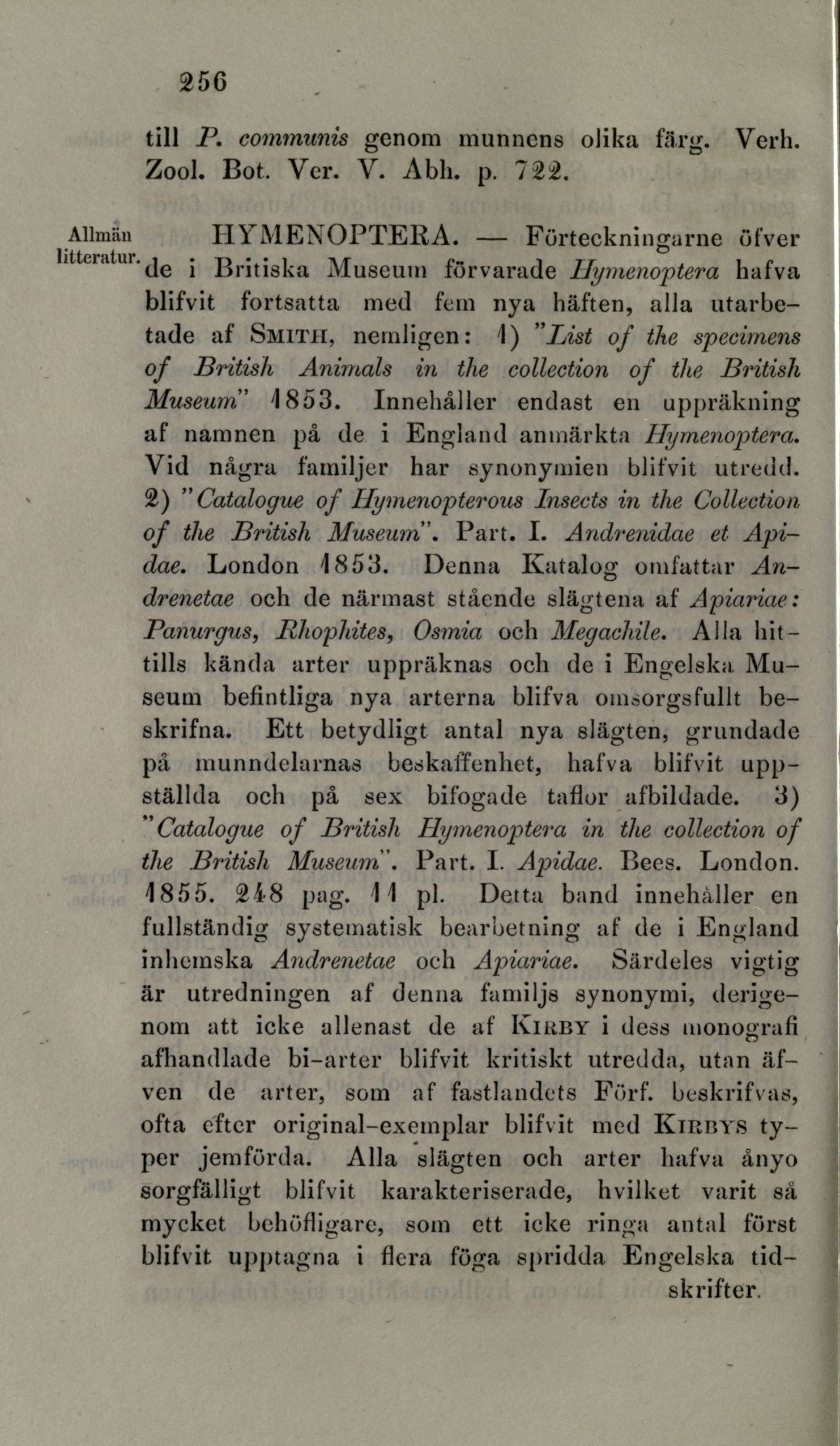 (le i Britiska Museum förvarade Hymenoptera hafva