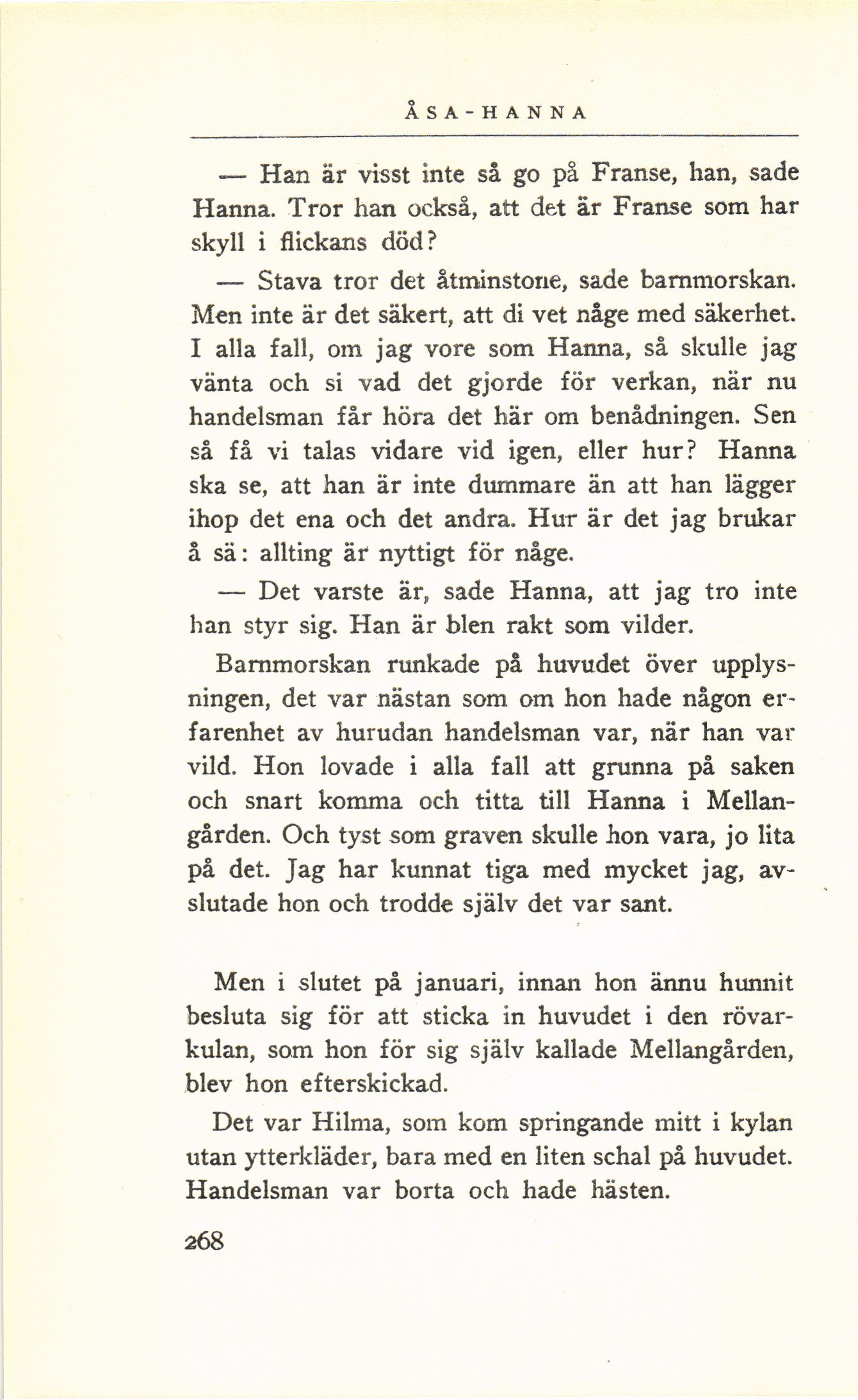 — Det värste är, sade Hanna, att jag tro inte