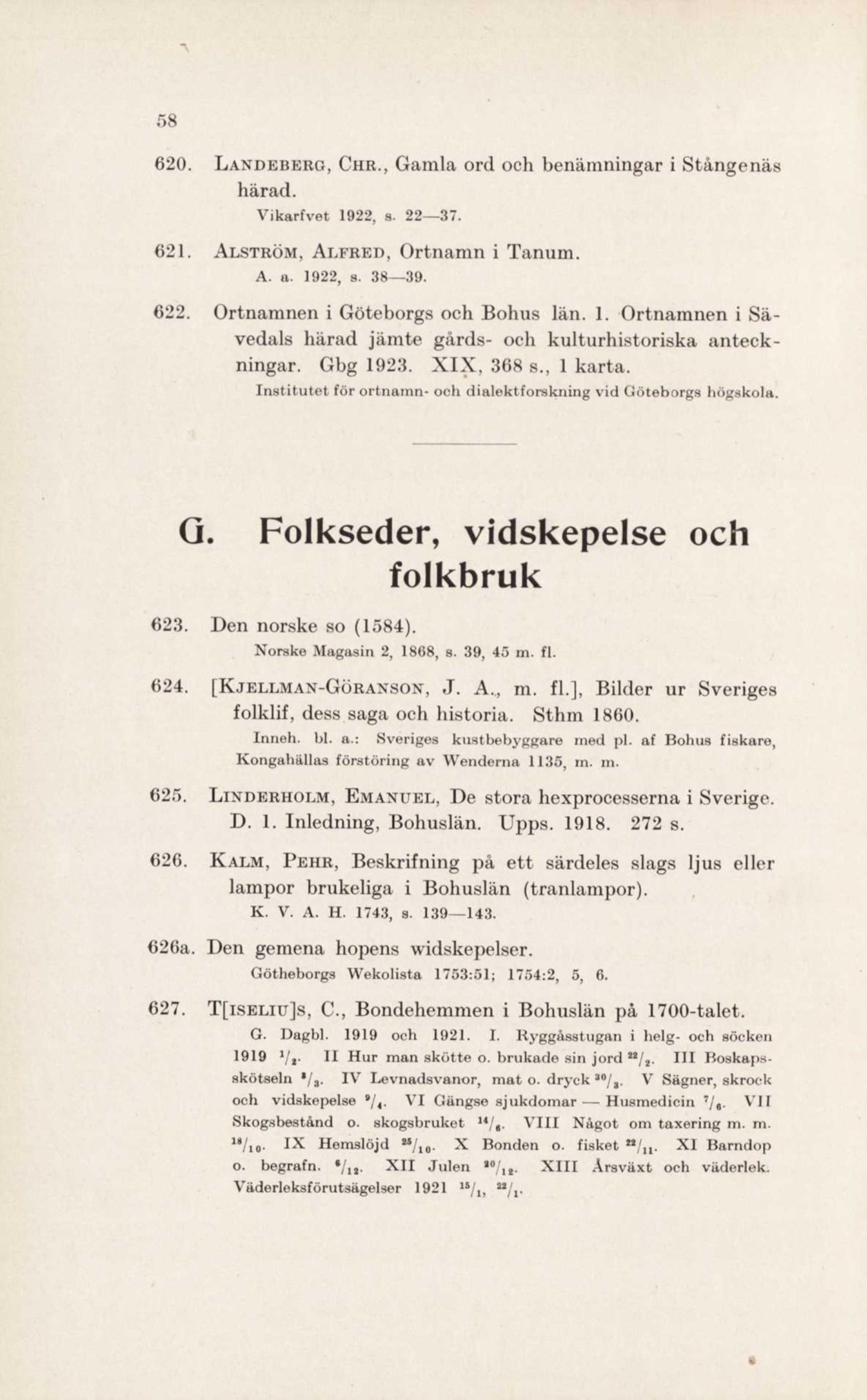 620. Landeberg, Chr., Gamla ord och benämningar i Stångenäs