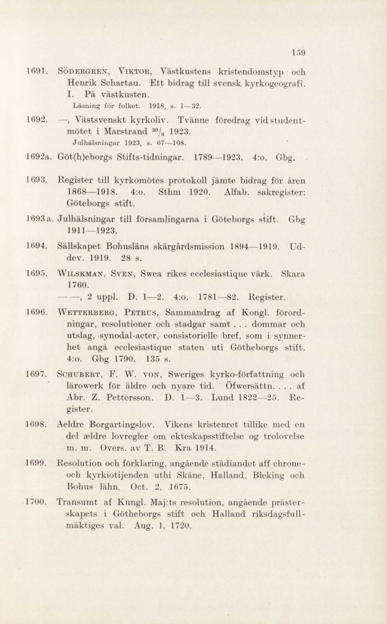 1692. —, Västsvenskt kyrkoliv. Tvänne föredrag vid student-