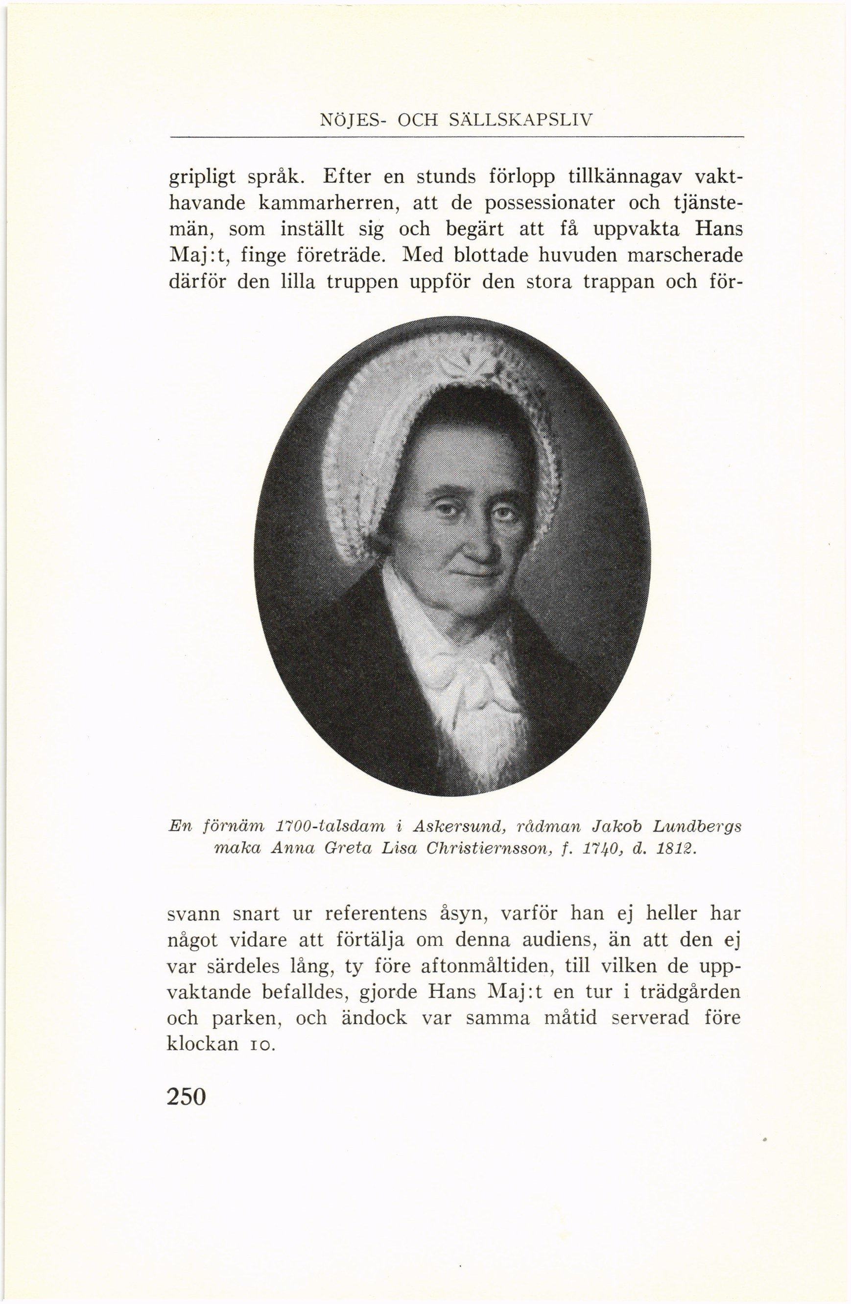 En förnäm 1700-talsdam i Askersund, rådman Jakob Lundbergs