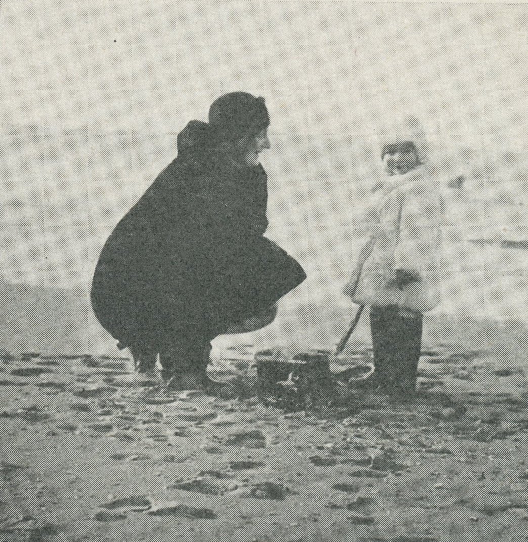 | Kronprinsessan Astrid leker med Joséphine-Charlotte på plagen i Ostende. |