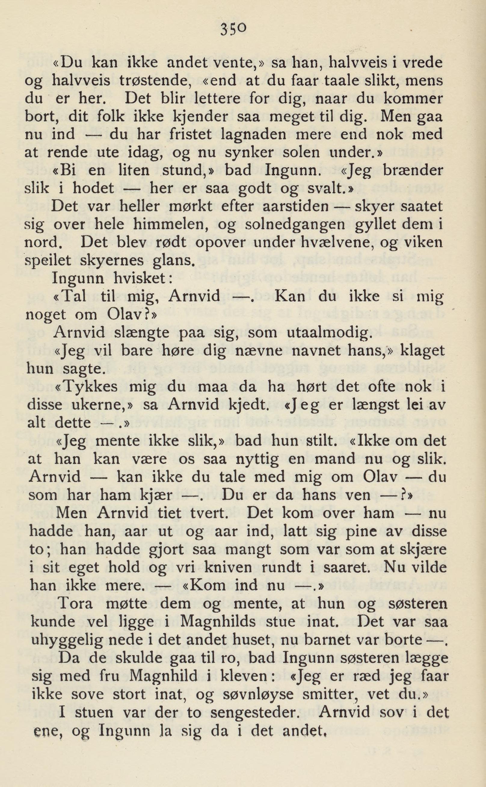 «Bi en liten stund,» bad Ingunn. «Jeg brænder