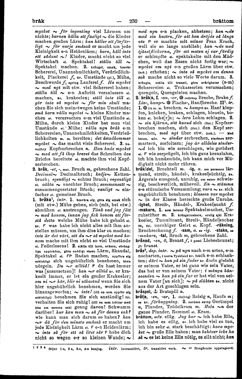 bråttom, adv. eilig. Jag har ~ ich habe Eile,