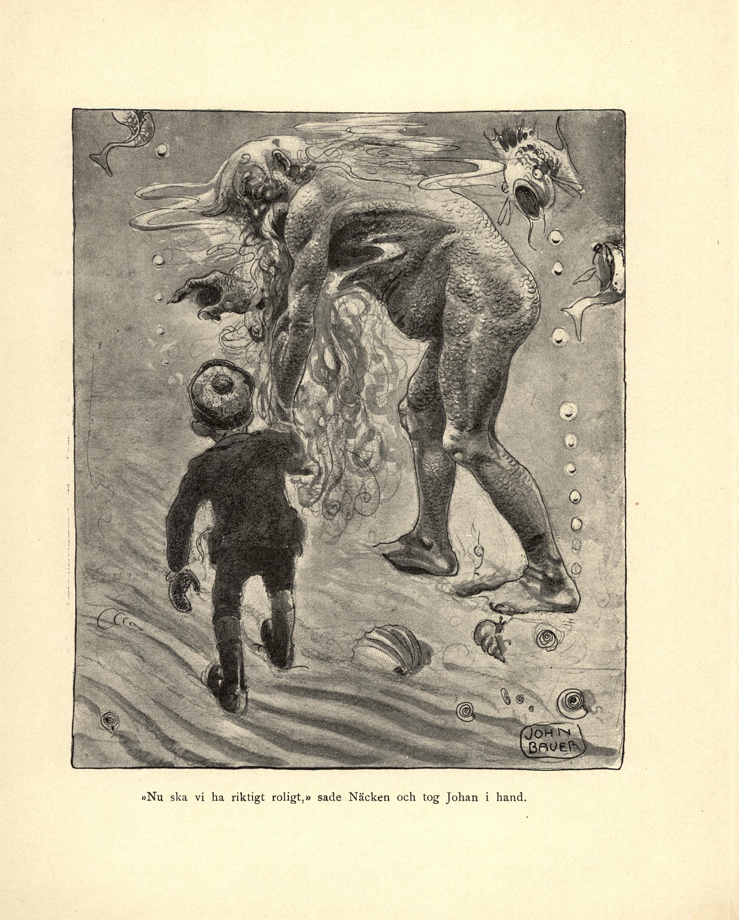| Ill. JOHN BAUER »Nu ska vi ha riktigt roligt,» sade Näcken och tog Johan i hand. |