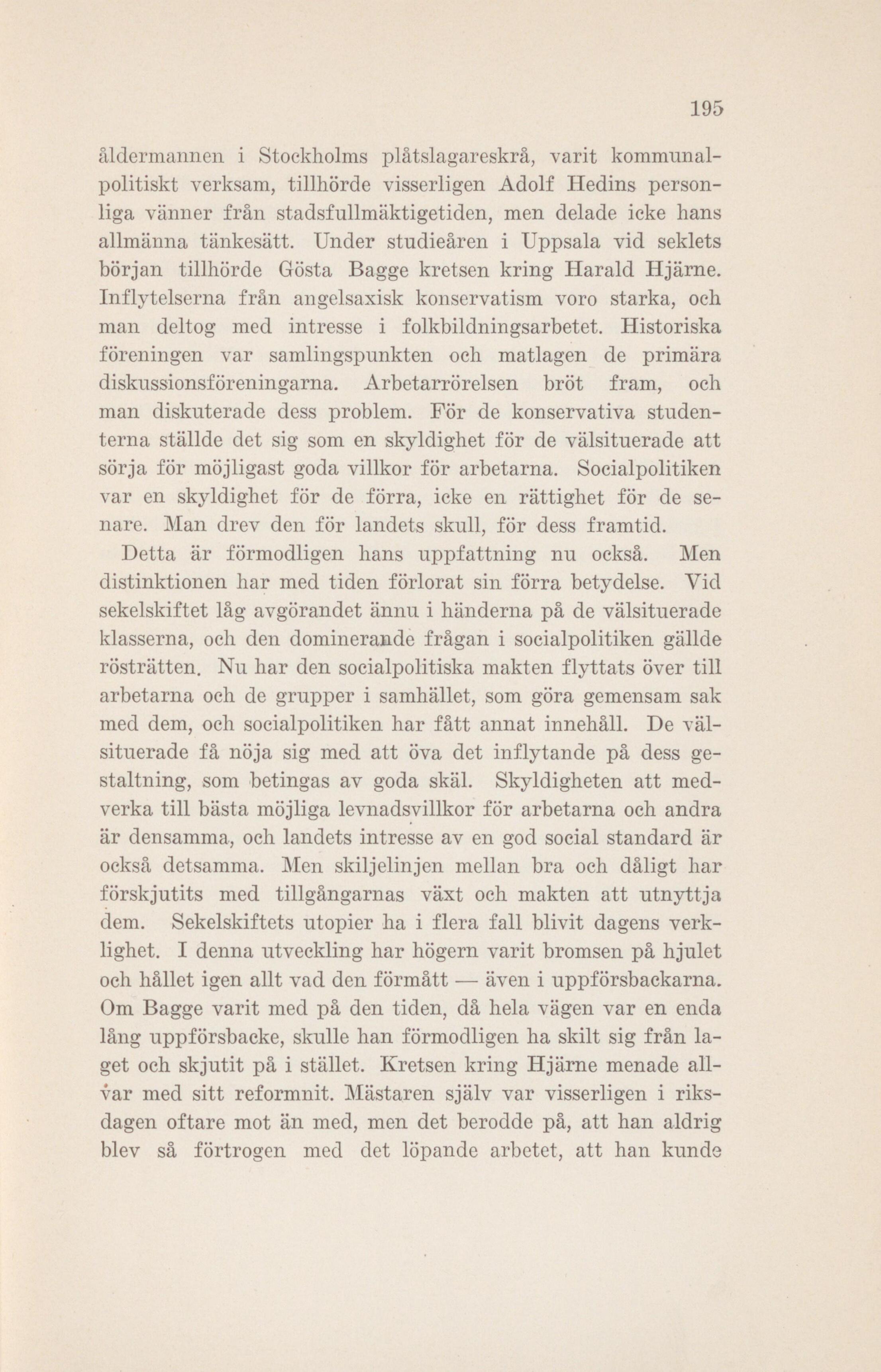 början tillhörde Gösta Bagge kretsen kring Harald Hjärne.
