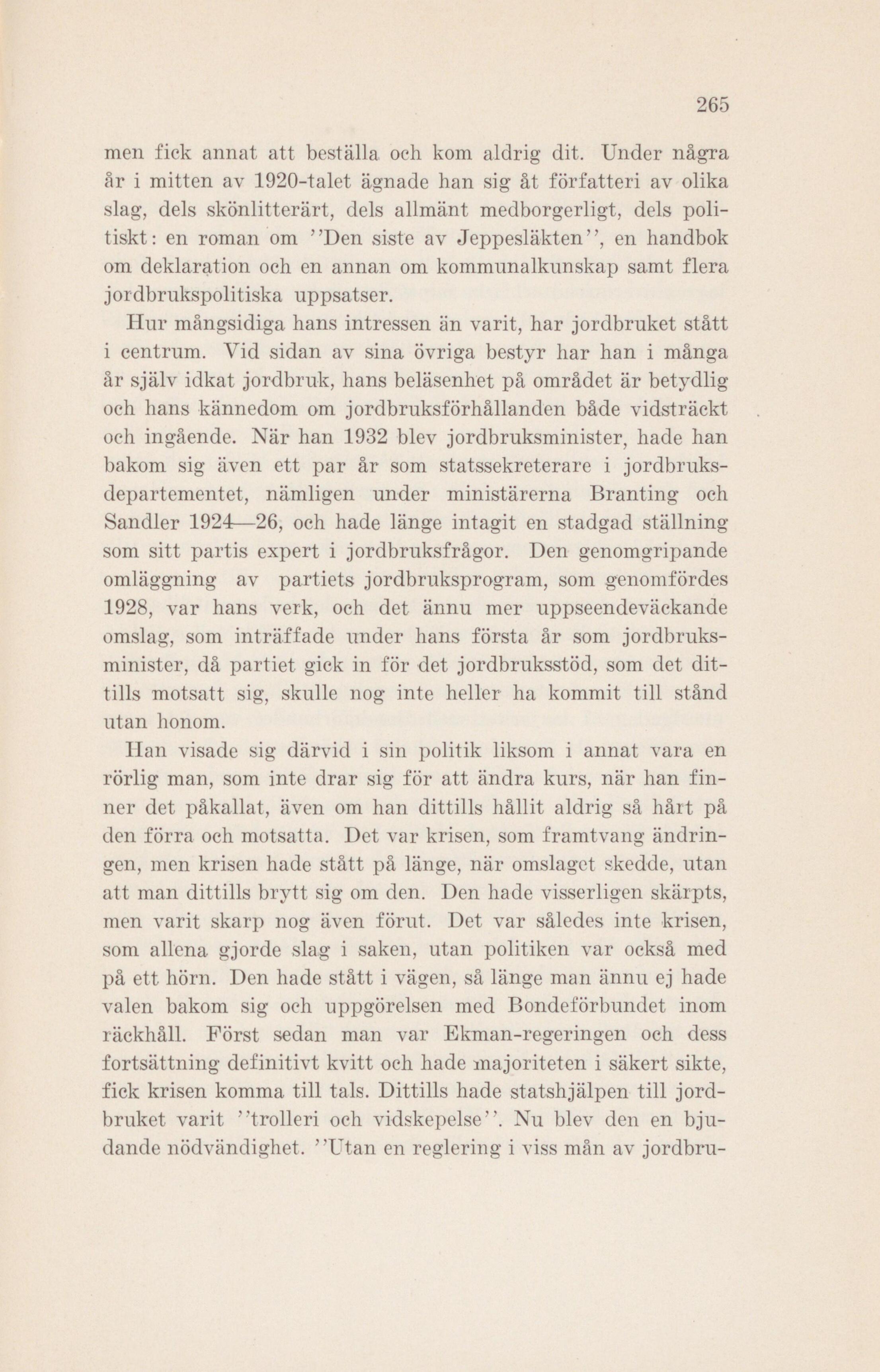 och ingående. När han 1932 blev jordbruksminister, hade han