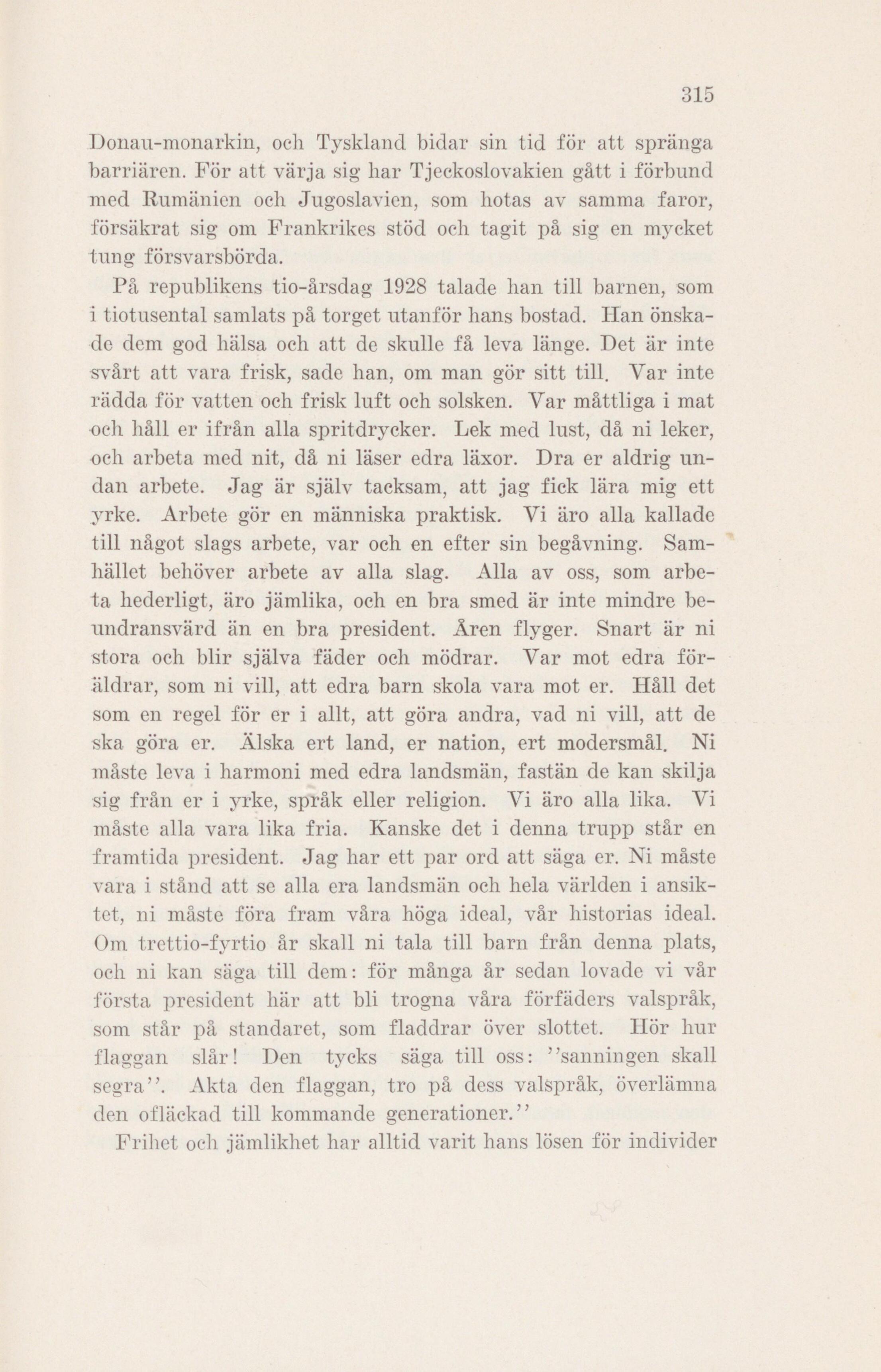På republikens tio-årsdag 1928 talade han till barnen, som