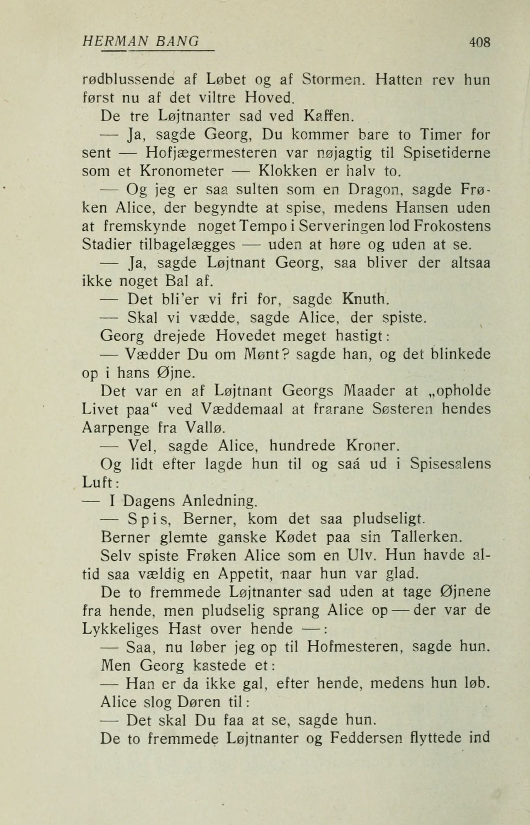 Selv spiste Frøken Alice som en Ulv. Hun havde al-
